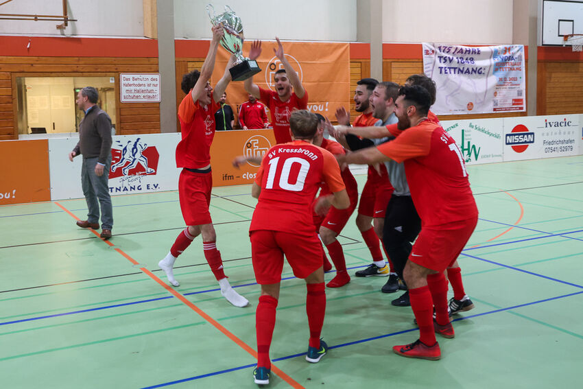 Im Endspiel gewann Kressbronn dank zweier Tore von Tim Siegel mit 2:0 gegen den TSV Eschach und stellte zudem mit dem 24-jährigen Elias Wiesener den besten Spieler des Turniers. „Wir hatten Probleme, ein Team zusammenzustellen. Umso überraschter sind wird, dass es so geklappt hat“, meinte Wiesener, für den der Wille den Ausschlag gab. Solch ein Turniersieg sorge natürlich immer für ein „positives Gefühl“. Aber im Hinblick auf die am Sonntag, 12. März startende Rückrunde in der Fußball-Bezirksliga Bodensee würde Wiesener das nicht zu hoch bewerten. „Liga ist was anderes“, so der 24-Jährige.