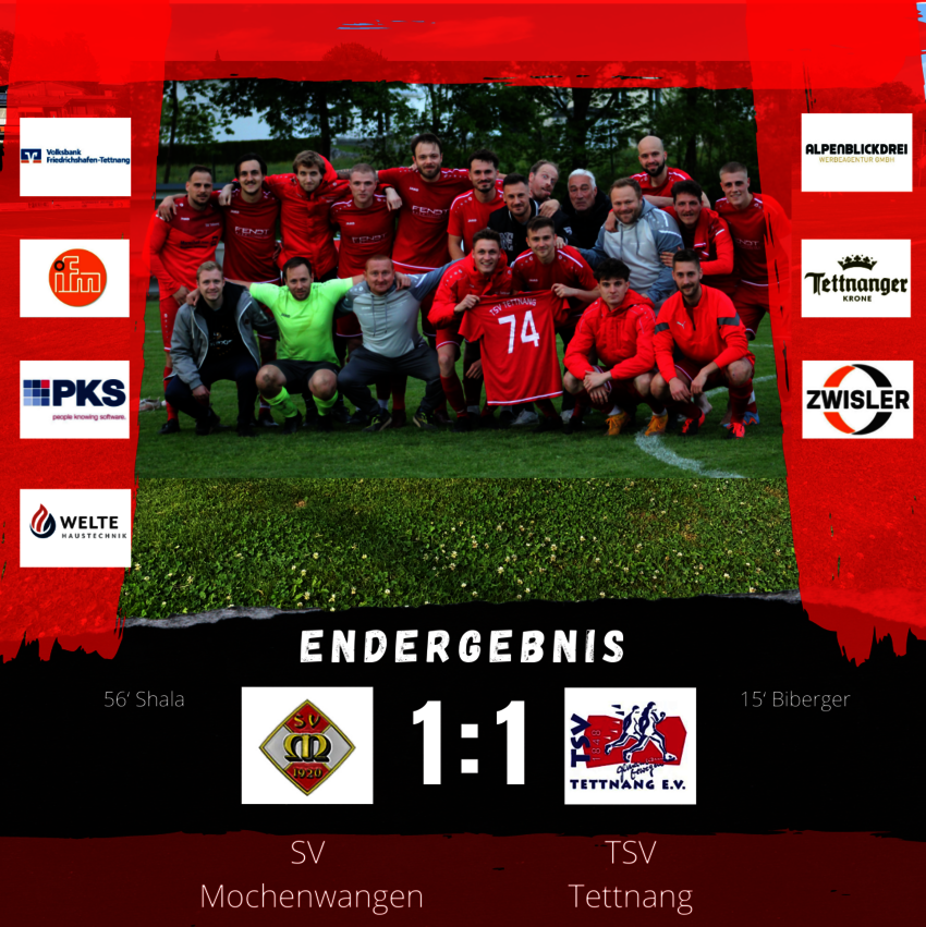 Fazit: Die erste Halbzeit war ausgeglichen mit mehr Ballbesitz auf der SVM Seite. Torchancen waren auf beiden Seiten Mangelware, Tettnang zeigte sich aber effektiver und ging somit nicht unverdient in Führung. In der zweiten Hälfte war Mochenwangen deutlich präsenter in den Zweikämpfen und hatte mehr Chancen. Einzig die Chancenverwertung ließ zu Wünschen übrig. Dennoch konnte der TSV mit der Punkteteilung zufrieden sein und der SVM muss sich wohl eher ärgern über den Chancenwucher.