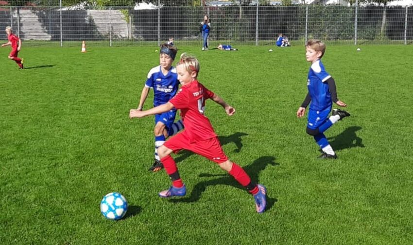 Am 7. Oktober waren wir zu Gast beim TSV Eschach im zunächst sehr nebeligen Obereschach. Hier spielten unsere vier F-Jugend Mannschaften aufgeteilt in zwei Staffeln. Trotz des anfänglichen Nebels fanden die Kids die Tore und nach kurzer Zeit kam dann die Sonne heraus. TT1 und TT2 spielten zusammen in einer Staffel. Beide Mannschaften waren im Vorfeld top aufgestellt, ungewöhnlich zahlreiche und recht kurzfristige Ausfälle reduzierten die Teams wieder auf nur jeweils 5 Spieler.