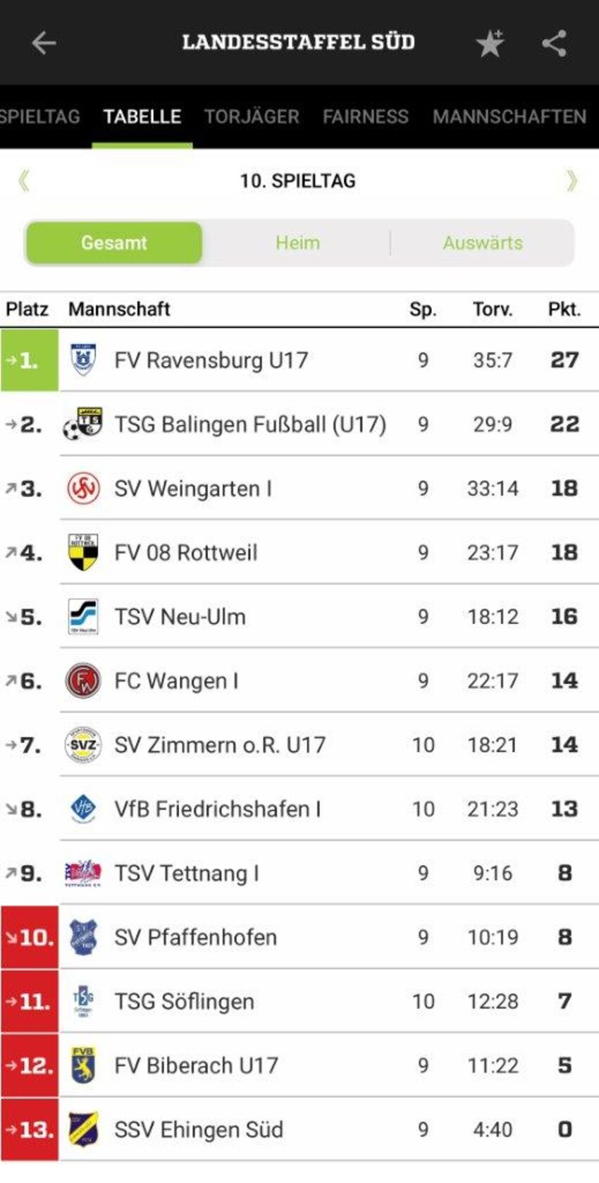 B-Junioren, Landesstaffel Süd, 10. Spieltag