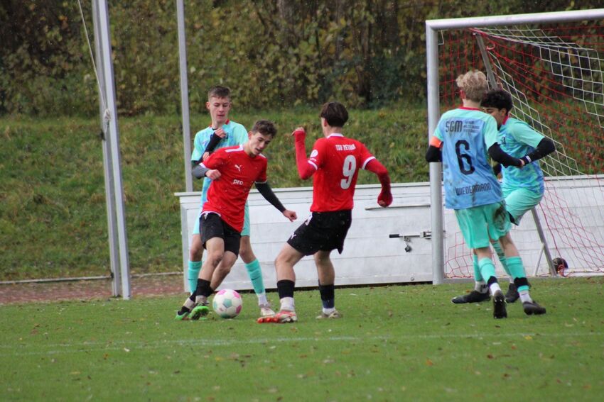 Nachdem die B1-Jugend mittlerweile bereits bei 6 Unentschieden aus 10 Spielen steht, sollte gegen den direkten Verfolger SV Pfaffenhofen endlich der erste Dreier im Manzenberg-Stadion eingefahren werden. Tatsächlich schien die Brisanz dieses Duells die Einheimischen eher lähmen denn zu beflügeln. Recht schnell erlangte der Gast aus Pfaffenhofen, genau wie der TSV Aufsteiger in die Landesstaffel, ein spielerisches Übergewicht und kam zu deutlich strukturierteren Angriffsaktionen. Wie bereits in den vergangenen Spielen erwies sich die Tettnanger Defensive jedoch als sehr stabil, zumindest bei Aktionen aus dem Spiel heraus. Anders sieht es bei Standards aus und so war es ein Eckstoß, der zur durchaus verdienten Führung des Gastes in der 24. Minute führte. Da auch nach diesem Rückstand nur wenig zusammenlief bei TSV Tettnang, musste man sich mit dem knappen Rückstand in die Kabine begeben und sich dort einer entsprechend deutlichen Traineransage stellen.