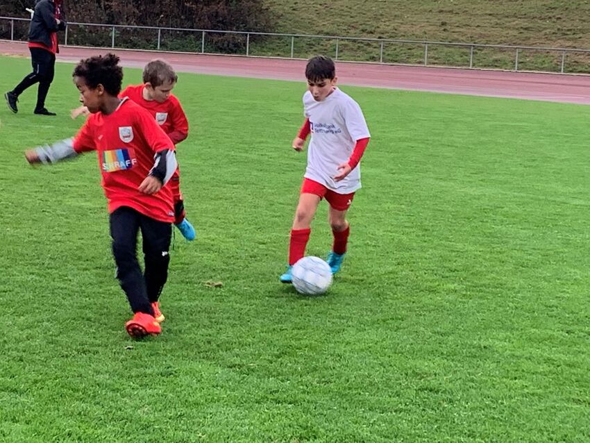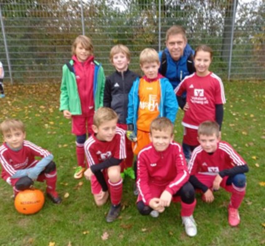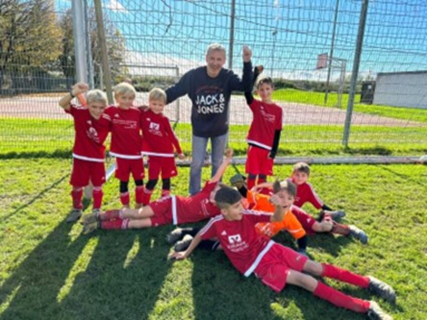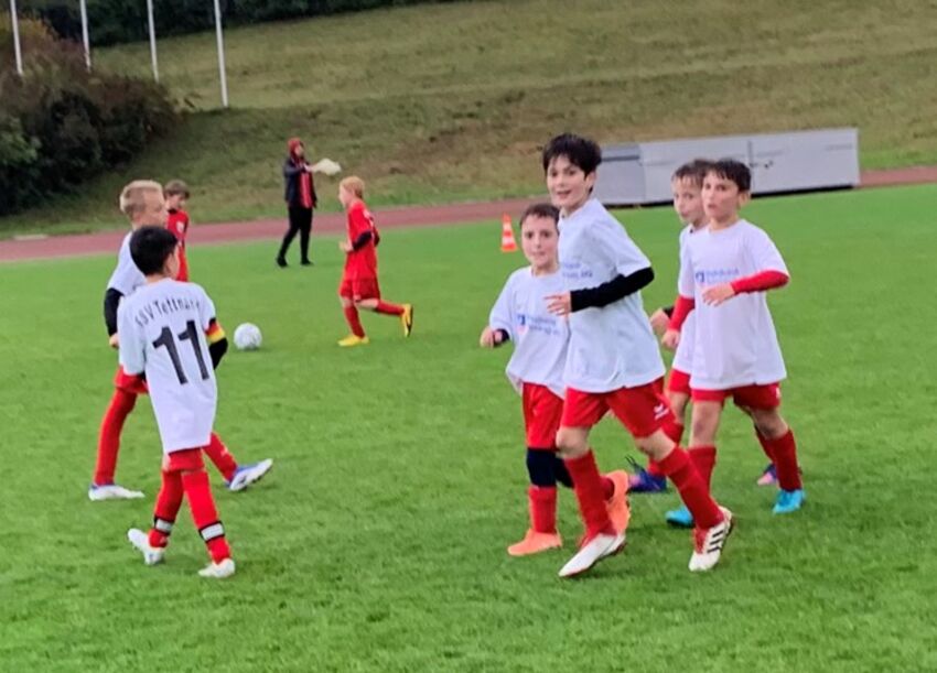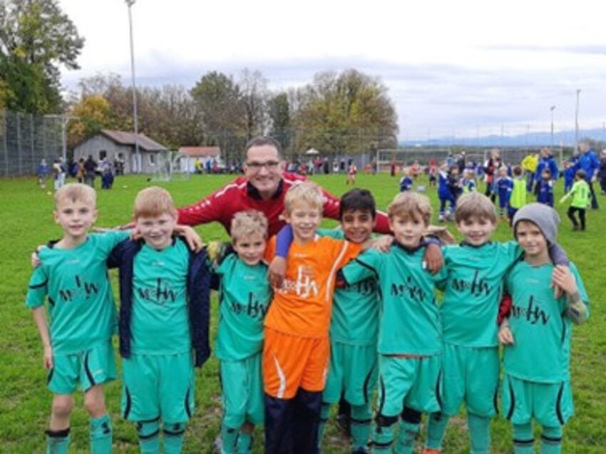 Am Sonnabend, 21.10., waren wir zum wfv-F-Jugendturnier nach Ettenkirch eingeladen. Wie in den Wochen zuvor sind wir mit 3 Mannschaften und reichlich vielen Auswechselspielern angereist, so dass wir üppig durchwechseln konnten. Nach etwas Durcheinander vor der Trainerbesprechung konnte das erste Spiel auf dem durchnässten Ettenkircher Nebenplatz mit 10 Minuten Verspätung begonnen werden. TT1 ist in der Gruppe 15 angetreten und hat dort ein richtig gutes Bild abgegeben. Trotz zwei knappen Spielen führten die Jungs mit 6 Siegen die Tabelle wieder an. Während das Stürmerpaar Elias und Eman offenbar nicht ihren besten Tag hatten, waren Juli und Leonas sehr gut unterwegs. Die Abwehr mit Samu und Mansur war überragend. Lars im Tor hat den Rest, wie immer, sicher gehalten. Für TT2 und TT3, die beide in der Gruppe 16 angetreten sind, haben wir eine neue, deutlich gleichmäßigere Spielerverteilung ausprobiert, sodass beide Mannschaften gleich stark ins Turnier gegangen sind. Zunächst gab es bei den Spielern, die sonst in der TT1 gespielt haben und jetzt in TT2 und TT3 spielen sollten etwas Unmut, sogar Tränen, weil bisher der Einsatz in TT1 als Belohnung dargestellt wurde. Im wfv Turnier geht es aber nicht um Punkte, sondern um den Spielspaß, und zwar ALLER Kinder. Dieser Ansatz ist besonders in TT3 gelungen. Hier ließ sich eine tolle Entwicklung beobachten: die jüngeren Spieler konnten viel von den Älteren lernen, ein großer Dank hier an Moritz und Denni. Alle Spieler, klein wie groß, sind im Laufe des Turniers zu einer Einheit verschmolzen, das Zusammenspiel wurde mit jedem Spiel immer besser, sodass nach nur einer Niederlage im ersten Spiel fünf Siege folgen konnten. Gut gemacht!