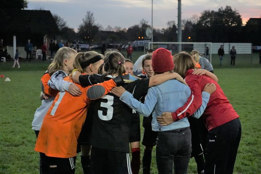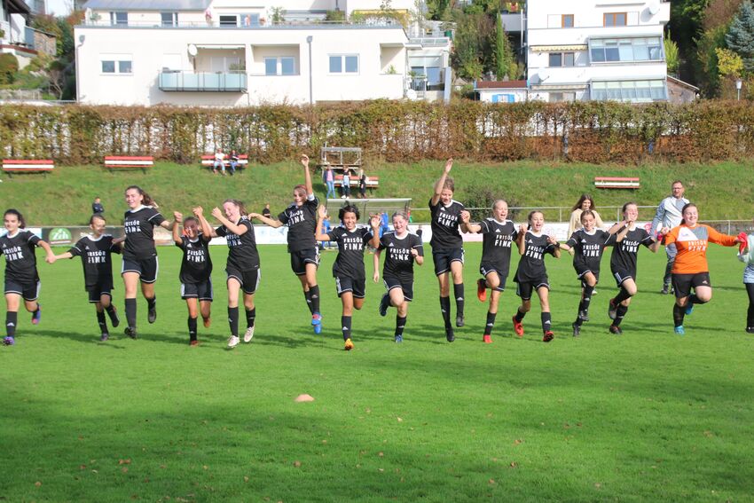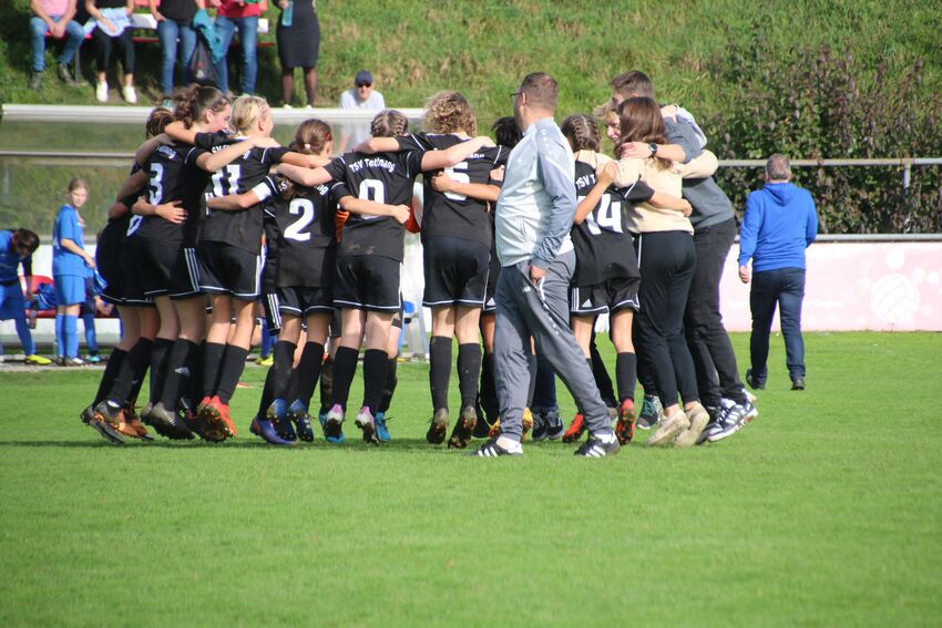 Am letzten Spieltag der Herbstrunde wollte der designierte Meister aus Tettnang natürlich seine weiße Weste wahren und auch das Spiel gegen die Türmestädterinnen der TSB gewinnen. Wie in der gesamten Runde waren unsere Mädels von Beginn an feldüberlegen, wobei auch Ravensburg mit technisch guten und vor allem schnellen Spielerinnen immer gefährlich vor das Tor kamen. Bereits in der 2. Spielminute gelang Lilly nach einer tollen Chipflanke von Sina die Führung, RV schlug aber umgehend zurück. Kaya sorgte mit einem satten Schuss aus dem Halbfeld für die erneute Führung, ehe Nora mit ihrem Premiere-Tor auf 3:1 erhöhte. So ging es auch in die Pause. Nach dem Wechsel hatte die TSB durch einen Strafstoß die große Chance zum Anschluss, doch Juditha’s Fingerspitzen und die Latte verhinderten dies. Es gab weiter Chancen auf beiden Seiten, wobei unsere Tettnanger Mädels die zwingenderen Möglichkeiten hatten. Letztlich blieb es bei diesem Ergebnis und somit konnte die Runden mit 6 Siegen und 30:5 Toren als Erster beendet werden. Nach dem Spiel wurde mit vielen Eltern und auch E-Spielerinnen bei Pizza in herrlicher Sonne vor dem Vereinsheim im Ried gefeiert.