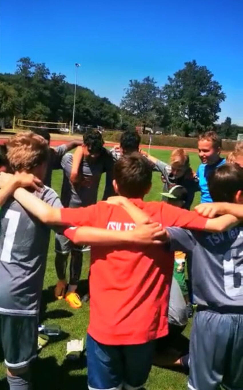 wirklich gefährlich vor dem Tor zu werden. In einer Kontersituation der Gäste musste der Torhüter der Gastgeber auf dem schwierigen Untergrund sein ganzes Können aufzeigen um die den Rückstand zu verhindern. Mit laufender Spielzeit erspielte sich der TSV dann einige Chancen. Eine davon wurde in der 39. Minute nach einem langen Ball aus der Abwehr heraus souverän zur 2:1 Führung verwandelt. Die TSV Jungs waren dann aber wohl zu sehr mit Ihrem Torjubel beschäftigt und bekamen direkt vom Anstoß ab, durch eine feine Einzelleistung, die Quittung mit dem 2:2 Ausgleich. Diesen unnötigen Gegentreffer wollten die Jungs sofort wieder gutmachen. Nach einem einstudierten Eckball konnte so in der 42. Minute direkt die erneute Führung erzielt werden. Dieses Mal blieb die Konzentration hoch und die Jungs drückten konsequent auf den vierten Treffer. Dieser gelang nach einem feinen Dribbling an der Torauslinie in der 46. Spielminute. Die 4:2 Führung gab nun die nötige Sicherheit und konnte bis zum Schluss erfolgreich verteidigt werden. Ein großes Lob an die gesamte Mannschaft für die geschlossene Mannschaftsleistung. In diesem Spiel wurde erneut gezeigt welches Potential in Ihr steckt, wenn alle Vorgaben konsequent umgesetzt werden und die Einstellung bzw. Spielvorbereitung stimmt. Ebenfalls ein großes Lob und vielen Dank an den kurzfristig eingesprungenen Schiedsrichter Timo Barthel, der das Spiel souverän und fehlerlos leitete.