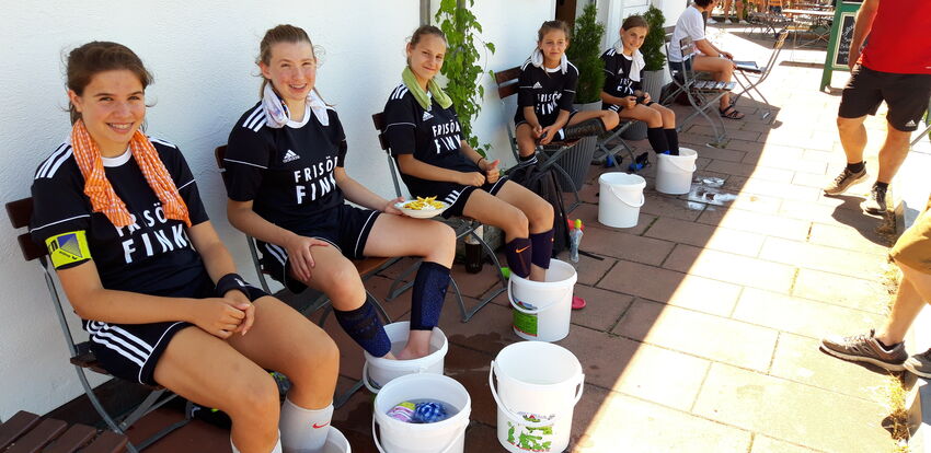 Anschließend wurde an gleicher Stelle der Turniersieg der B-Mädels gefeiert, bevor es zum Relegationsspiel der Frauen in Schwendi ging… - ein langer, aber erfolgreicher Fußball-Tag.