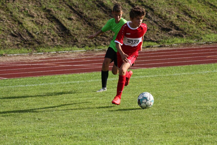 Die E2 des TSV startete direkt druckvoll und offensiv in ihr zweites Saisonspiel und konnte bereits in der 3. Spielminute den Treffer zum 1:0 erzielen. Danach gelangen den Rot/Weißen einige sehr tolle Spielzüge und weitere Treffer bis zum 7:0 Halbzeitstand. Auch defensiv arbeitete die Mannschaft geschlossen und ließ kaum eine Torchance der Gastgeber zu. Die zweite Halbzeit wurde ebenfalls souverän bestritten und es wurden zwei weitere Treffer zum Endstand von 9:0 erzielt. Mit etwas mehr Konsequenz, speziell in der zweiten Halbzeit, hätte das Ergebnis auch noch höher ausfallen können. Alles in allem stand aber am Ende ein schön herausgespielter, souveräner Auswärtssieg.