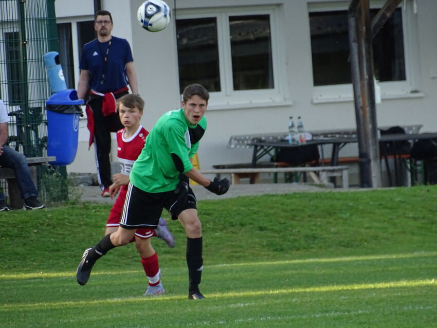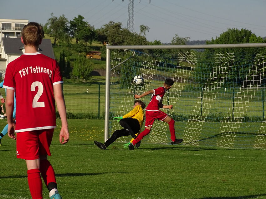 Nach der verdienten Niederlage beim unangefochtenen Spitzenreiter letzte Woche wollte der TSV das Derby unbedingt gewinnen um in der Tabelle einen Sprung nach vorne zu machen. Auf dem Platz war davon in den ersten Minuten leider wenig zu sehen. Die Tettnanger Jungs spielten langsam, behäbig und wirkten etwas schläfrig, gingen aber trotzdem mit dem ersten Torschuss mit 1:0 in Führung. In der Folge sorgte der Treffer für keine Verbesserung im Spiel und die Gäste kamen immer besser auf. Die Angreifer aus Tannau brachten das TSV Gehäuse das ein ums andere Mal in Gefahr. Der verdiente Ausgleich und gleichzeitige Halbzeitstand fiel durch einen abgefälschten Schuss in der 16. Spielminute. Wie so oft zeigten die Rot-Weißen nach der Halbzeit ihr anderes Gesicht. Mit dem ersten Angriff nach dem Seitenwechsel gelang per Kopf die 2:1 Führung. Nun erspielten sich die Jungs durch schöne Spielzüge mehrere klare Tormöglichkeiten, die zunächst nicht genutzt wurden. Defensiv standen die Tettnanger nun ebenfalls sehr gut und verteidigten gemeinsam mit einer hohen Laufbereitschaft. Nach zwei strafbaren Situationen im Strafraum der Gäste entschied der gut leitende Schiedsrichter jeweils auf Neunmeter. Der erste Neunmeter wurde in der 33. Minute glücklich zum 3:1 verwandelt, der zweite dann sehr platziert und souverän zum 4:1 Endstand in der 42. Minute. Aufgrund der sehr guten zweiten Halbzeit ein verdienter Derbysieg für den TSV. Es bleibt allerdings die Frage warum diese Leistung nicht von Beginn an auf den Platz gebracht wird.
