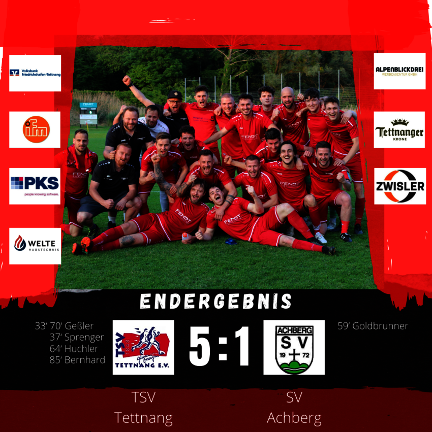 Im Finale trifft der TSV Tettnang am 08.06. (Fronleichnam) um 17 Uhr auf die TSG Ailingen. Wir bedanken uns bei den Fans fürs Kommen und hoffen euch auch im Finale wiederzusehen. Der Austragungsort wird noch bekannt gegeben. Das nächste Spiel ist am Sonntag auswärts gegen den abstiegsbedrohten SV Weingarten, Spielbeginn ist um 15 Uhr. Der SVA Achberg empfängt zur selben Zeit die SG Baienfurt.