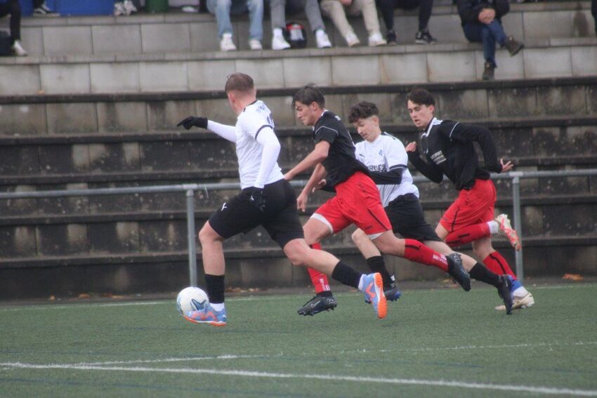Dementsprechend hatte der VfB auch leichte Feldvorteile, der TSV hielt jedoch nach Kräften dagegen und erspielte sich durchaus die eine oder andere Abschluss Möglichkeit. Das Mehr an Torchancen lag jedoch in dieser Phase auf Seiten des Gastgebers, insbesondere in der 35. Minute, als der Unparteiische korrekterweise auf Strafstoß entschied, der ausführende VfB-Spieler jedoch nur den Außenposten traf. Mit Beginn der zweiten Halbzeit erhöhte der TSV langsam den Druck auf das VfB-Tor und war auch spielerisch absolut auf Augenhöhe mit dem sicherlich zu favorisierenden Gastgeber. Trotzdem war es Letzterer, der in der 51. Minute den Bann brechen und die 1:0 Führung erzielen konnte. Der Moral der Tettnanger Spieler tat dies jedoch keinen Abbruch und die Aktionen wurden zunehmend zielstrebiger. Die letzten zehn Minuten liefen bereits, als auch noch Luka Rasch verletzt den Platz verlassen musste und Nico Meissner im gegnerischen Strafraum nur durch ein sofort geahndetes Foul zu bremsen war. Auf Tettnanger Seite wähnte man sich bereits belohnt für den aufopferungsvollen Kampf, die Dramatik sollte sich jedoch noch weiter steigern: dem Schützen rutschte beim Strafstoß das Standbein weg, wodurch der Ball nicht ins Tor sondern in Richtung Fangzaun ging. Während dieser Genickschlag eine Mannschaft durchaus in Resignation verfallen lassen kann, bewirkte dies bei den Tettnanger Jungs genau das Gegenteil. Plötzlich wurden ungeahnte Kräfte mobilisiert, die taktische Formation war ohnehin längst über den Haufen geworfen und alles was noch laufen konnte drängte mit aller Macht in Richtung VfB-Tor. Es lief bereits die zweite Minute der Nachspielzeit, als der TSV auf Höhe der Mittellinie einen Freistoß zugesprochen bekam und sich bis auf den Schützen quasi alles im Strafraum des Gastgebers versammelte. Der weit und hoch geschlagene Ball setzte noch einmal auf, überflog alle sich nach ihm reckenden Spieler und senkte sich zum völlig verdienten wie frenetisch bejubelten 1:1 Ausgleichstreffer ins Netz. Aufgrund der langen Verletzungsunterbrechung war dies jedoch noch immer nicht das Ende des Spieles. Nur eine Minute nach dem Ausgleichstreffer hatte Nicolas Prejs sogar noch den Siegtreffer auf dem Fuß, sein Schuss konnte jedoch vom Torspieler abgewehrt werden und beim folgenden Gegenstoß war es plötzlich ein VfB-Spieler, der den Siegtreffer auf dem Fuß hatte, das Tor jedoch knapp verfehlte. Kurz danach beendete der Unparteiische dann dieses höchstdramatische Spiel, womit der TSV sich um diesen einen Punkt von den Abstiegsrängen entfernen konnte.