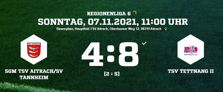SGM TSV Aitrach/SV Tannheim - TSV Tettnang II 4:8 (2:5)