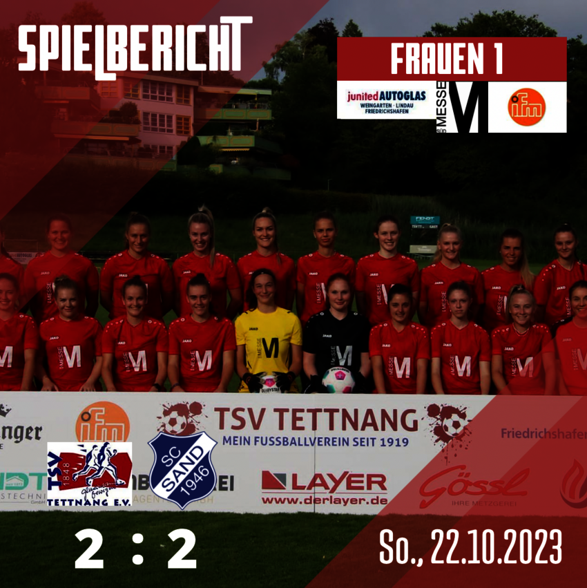 Den TSV Frauen stand am vergangenen Sonntag ein schwieriges Heimspiel bevor, da der bisher ungeschlagene Tabellenzweite aus Sand ins Ried anreiste. Dies zeigte sich bereits in der fünften Minute. Die Gäste eroberten den Ball im Zentrum und setzten ihre frei stehende Stürmerin gekonnt ins Szene. Diese hatte genug Platz, sich zu drehen und netzte unhaltbar ins TSV Tor ein. Der weitere Spielverlauf zeigte keine Veränderungen: Die Tettnangerinnen waren immer einen Schritt zu spät, bekamen auf keiner Position einen Zugriff und waren ideenlos in ihrem Offensivspiel. Torspielerin Lisa Mägerle hielt mit einer starken Parade ihre Mannschaft im Spiel. Aus dem Nichts gelang der Heimmannschaft jedoch noch den Ausgleichstreffer kurz vor der Halbzeit. Außenverteidigerin Marie Köger setzte sich souverän über die linke Seite gegen zwei SC-Spielerinnen durch und fand die mitlaufende Alica Reiner im Rückraum. Diese zögerte nicht lange und versenkte den Ball unhaltbar im Tor.