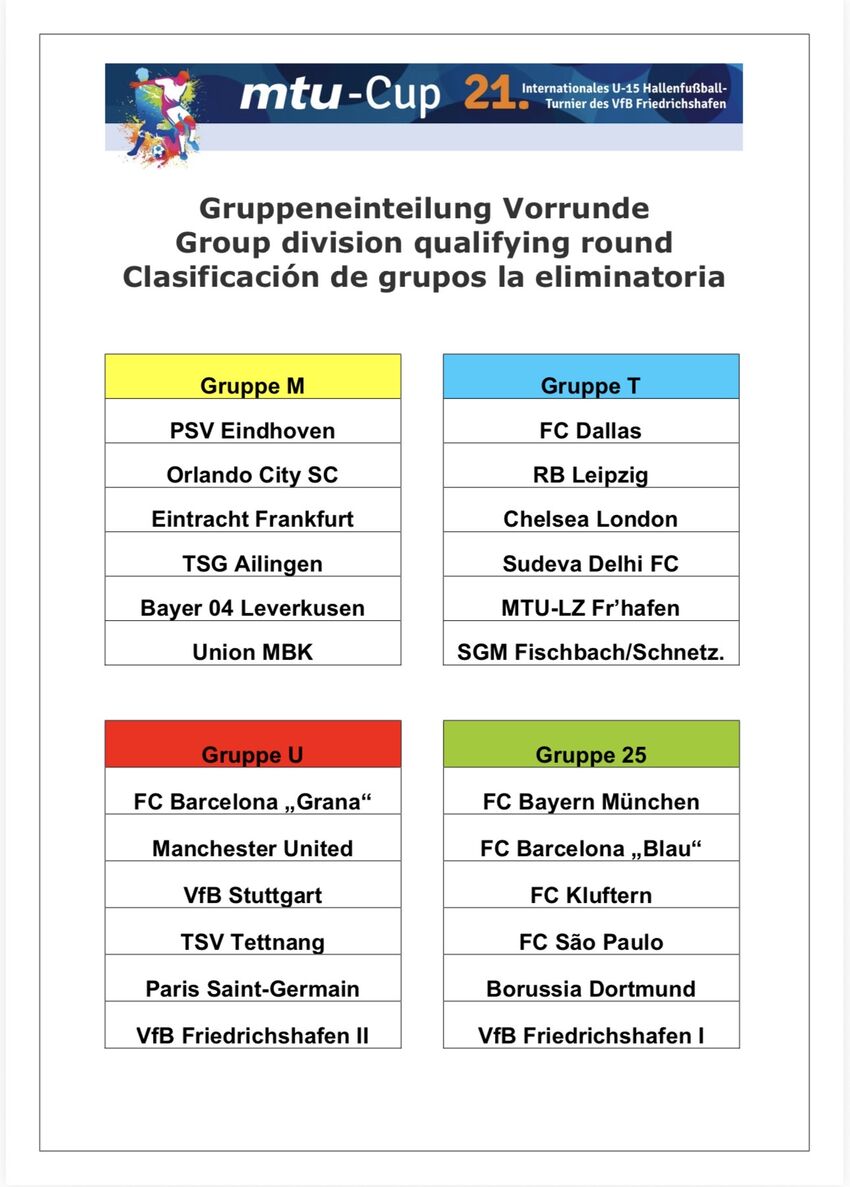 Viele Trainer der teilnehmenden Teams sprechen von dem besten U-15 Turnier in der Halle weltweit. Neben den deutschen top Teams, FC Bayern München, Borussia Dortmund, VfB Stuttgart, RB Leipzig, Eintracht Frankfurt und nach langer Pause wieder Bayer 04 Leverkusen wird erneut die europäische Elite am Start sein. Mit dabei auch der TSV Tettnang mit seiner U 15.