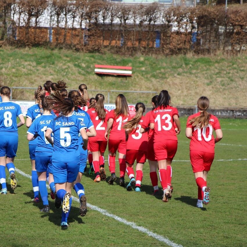 Die Juniorinnen vom SC Sand konnten durch Konter das verbesserungswürdige Umschaltspiel der Heimmannschaft für sich nutzen, um selber zu Chancen zu gelangen. Jedoch hatten die Tettnangerinnen durch ihren Kampfgeist immer einen Fuß dazwischen, den Rest hielt die fehlerfreie Torspielerin Lisa Mägerle souverän.