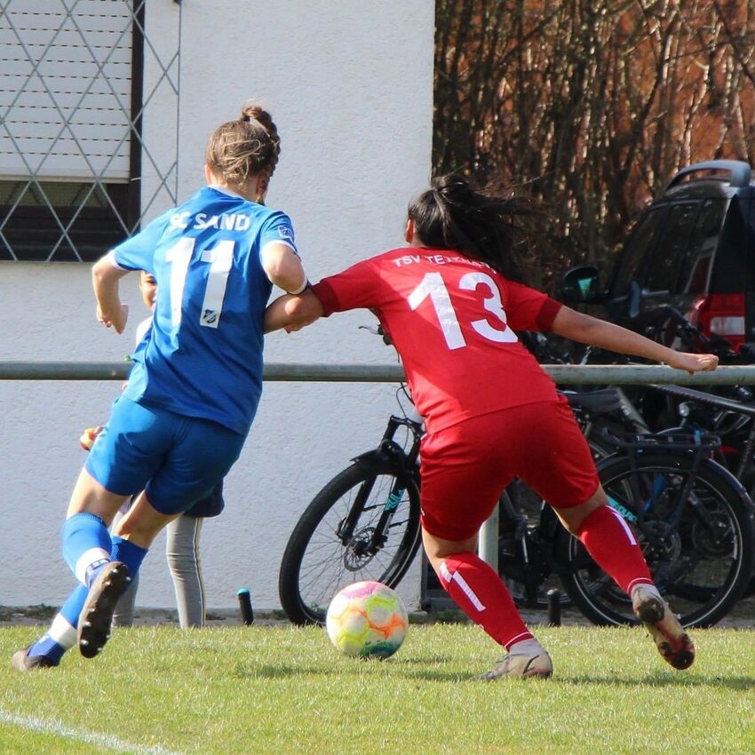 Der tiefe, schwer zu bespielende Rasenplatz machte es beiden Juniorinnen-Teams zunächst schwer einen konzentrieren Spielaufbau zu realisieren. In den ersten Minuten zeigte sich eine Überlegenheit auf Tettnanger Seite. SC Sand hatte in der 14. Minute ihre erste und in Halbzeit 1 auch größte Chance: nach einem Konter kratzt Torspielerin Lisa Mägerle einen tollen Schuss aus dem Winkel und konnte zur Ecke klären.