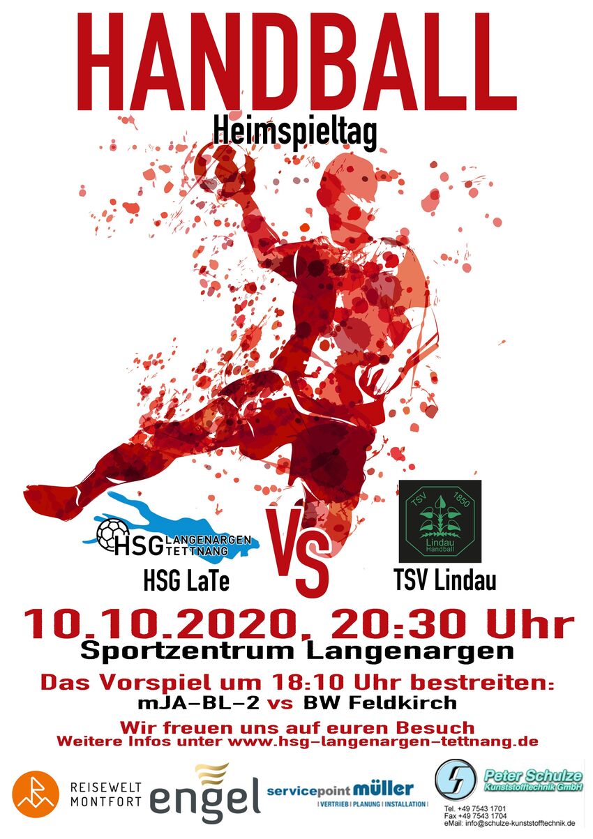 20:30 HSG Lang-Tett TSV Lindau sind die Teams der JSG Bodensee und die Herren 1 der HSG LaTe zuhause gefordert.