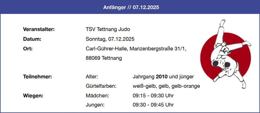 Veranstalter: TSV Tettnang Judo