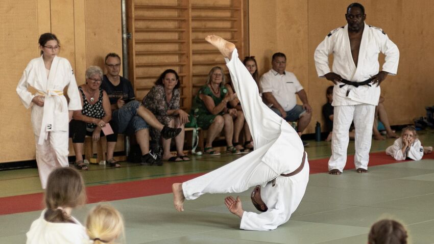 Die Judokas zeigten in der Halle Techniken, simulierten Bodenkämpfe und einige Demonstrationen der Selbstverteidigung: “Es war toll. Wir haben drei neue Schüler, die sich direkt während des Festes angemeldet haben, und zwei weitere, die in den letzten Wochen zu uns gekommen sind” berichtet Hervé Wansi. “Das ist eine gute Sache, denn die Gruppe wird größer und harmoniert sehr gut."