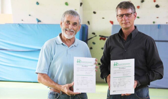 Die Herzsportgruppen des TSV Tettnang sind zertifiziert: Seit wenigen Wochen können René Dietrich und Adalbert Benkler, Abteilungsleiter und stellvertretender Abteilungsleiter des Reha-Sports Herzsport, Zertifikate des Württembergischen Behinderten- und Rehabilitationssportverband (WBRS) in den Händen halten. Mit der Anerkennung kann der Verein nun sicherstellen, dass Krankenkassen den Patienten den Herzsport be