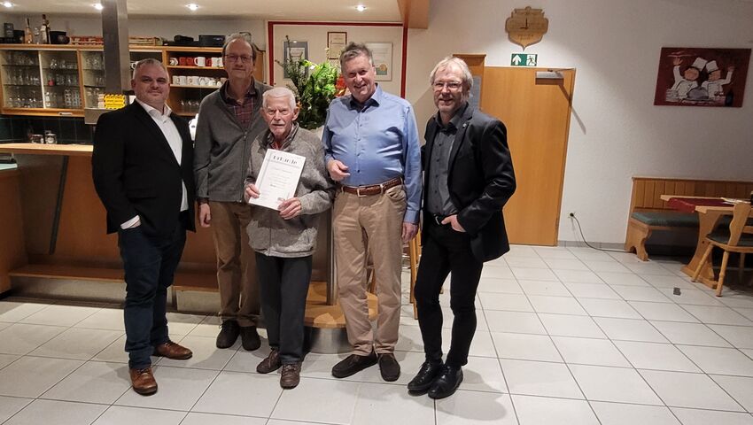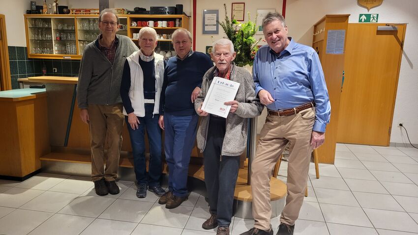Ehrenmitglied Harald Franzen, zeichnete Horst Hermann mit der Verdienstnadel des TSV in Bronze aus.