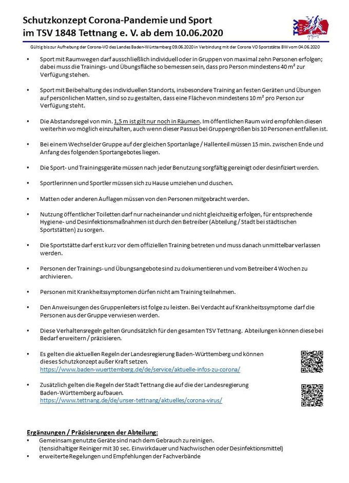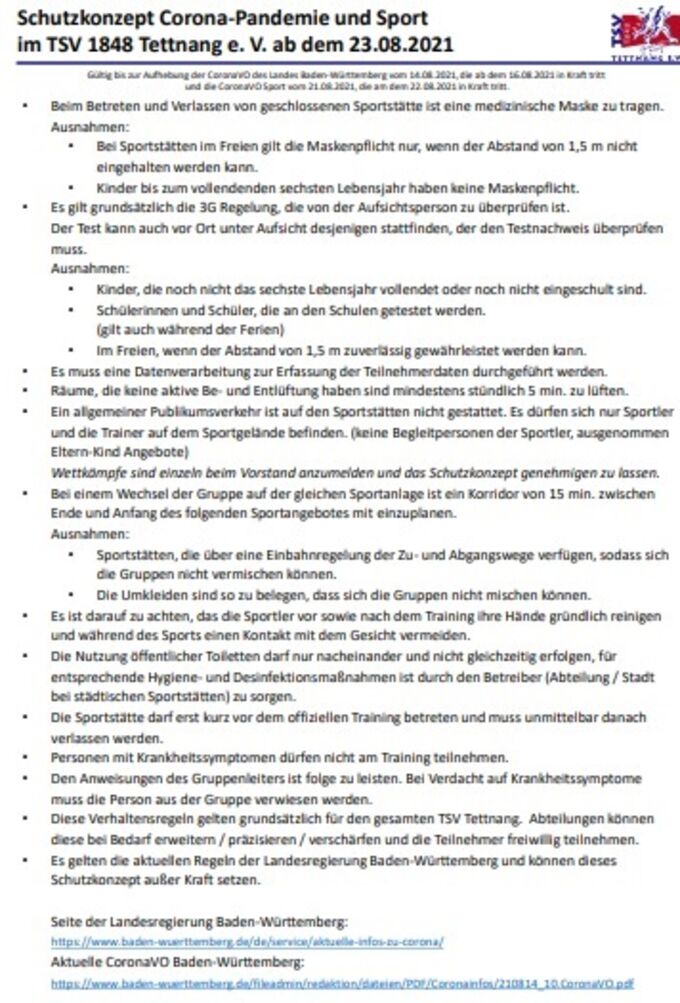 Dabei gilt das aktuelle TSV-Hygienekonzept, d.h. insbesondere: