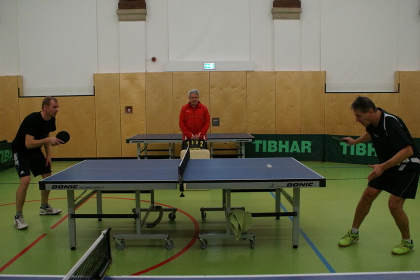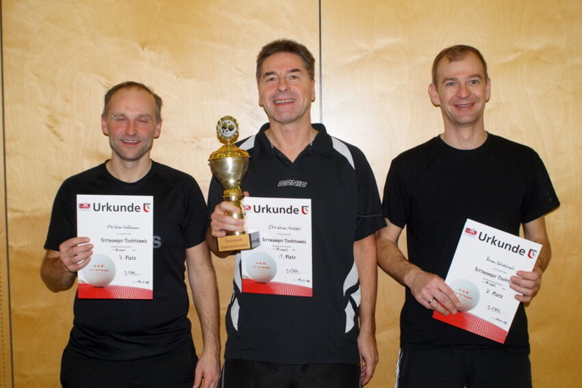 Auch bei den Aktiven war es ein großes Teilnehmerfeld, welches Vorstand Siegfried Merath begrüßen durfte. Der letztjährige Titelträger, Thomas Egelhofer, konnte leider nicht teilnehmen und seinen Titel verteidigen. Bei den Gruppenspielen gab es keine großen Überraschungen, aber viele knappe Entscheidungen. So konnten sich dann in den Viertelfinalspielen, Christian Hoffmann gegen Karl Knöpfler, Christian Mutzel gegen Marco Kraft, Simon Schobloch gegen Siegfried Merath und Julian Cilek gegen Philipp Junginger durchsetzen. Sehr spannend verliefen die Halbfinals, beide wurden erst nach dem Entscheidungssatz entschieden. Schobloch setzte sich dabei gegen Hoffmann durch und Mutzel behielt gegen Cilek knapp die Oberhand. In dem hochklassigen Endspiel war es dann Mutzel, welcher sich nach vier Sätzen gegen Schobloch den Stadtmeistertitel sichern konnte. Den dritten Platz belegte Christian Hoffmann. Das Doppelendspiel gewannen Alex Zick/ Simon Schobloch gegen Holger Niemayer/ Marco Kraft.