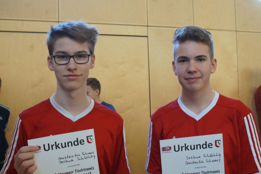 Einmal mehr gab es viele spannende und hochklassige Spiele bei den diesjährigen Tettnanger Stadtmeisterschaften. Jugendleiter Karl Knöpfler begrüßte ein großes Teilnehmerfeld bei den Jugendlichen und stellte ein sehr gut organisiertes Turnier auf die Beine. Es gab auch wieder eine Mädchengruppe, welche die Beste unter sich ausspielten. Bei den Jugendlichen gab es in den Gruppenspielen viele knappe Spiele, doch die Favoriten setzten sich durch. So konnten sich in den Viertelfinals David Bolk gegen Jared Manaloto, Constantin Schwarz gegen Peter Krapf, Joshua Schlichtg gegen Joel Marschall und Marius Gasper gegen Felix Zimmermann durchsetzen. In den Halbfinals waren es Bolk gegen Schlichtig und Schwarz gegen Gasper, welche sich mit ihren Siegen bis in das Endspiel kämpften. Hier war es dann David Bolk, welcher sich gegen Constantin Schwarz den Titel sicherte. Platz drei holte sich Joshua Schlichtig. Das Doppelendspiel bei den Jungen gewannen Schwarz/ Schlichtig gegen Bolk/ Gasper.