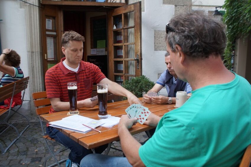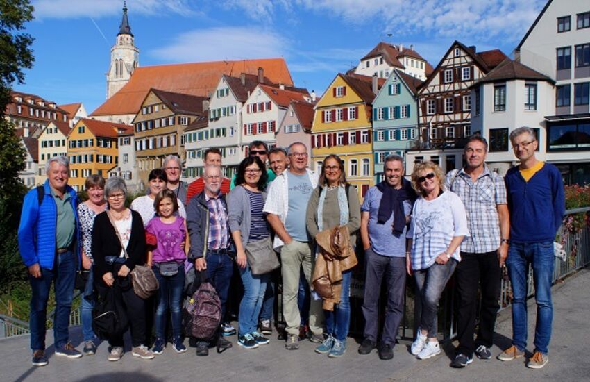 Vom Bahnhof Meckenbeuren aus startete man Samstags früh morgens mit der Bahn nach Tübingen. Nach einer doch eher abenteuerlichen Bahnfahrt wurde das Gepäck im Hotel abgestellt und man machte auf der Neckarinsel sogleich einen gemütlichen Frühschoppen. Bei einer Altstadtführung erkundete man einige tolle Ecken und es wurden die wichtigsten Sehenswürdigkeiten entsprechend erklärt. Nach dem einchecken im Hotel genoss man "Beim Mexikaner" ein gemeinsames Abendessen. Bei der anschließenden Nachtführung "Unheimliches Tübingen", erfuhr man gruselige Begebenheiten aus vergangenen Tagen. Am Sonntag morgen ging es nach einem ausgiebigen Frühstück vom Buffet zum Stocherkahn fahren. Auf zwei Kähnen verteilt genoss man Tübingen vom Neckar aus. Manche fühlten sich doch ein bisschen unwohl auf den etwas wackeligen Kähnen, aber es kamen alle wieder trockenen Fusses an Land. Nachmittags besuchte man die Ausstellungen auf Schloß Hohentübingen. Nach dem Abendessen, wo es schwäbische Spezialitäten gab, wurde das Gepäck wieder abgeholt. Mit tollen Eindrücken und guter Laune machte man sich wieder auf die Heimfahrt.