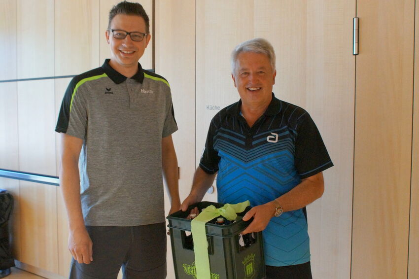 Die Tischtennisabteilung vom TSV Meckenbeuren feierte ihr 75 jähriges Jubiläum. Dazu luden sie befreundete Teams zu einem Jubiläumsturnier ein. Mit Spieler und Spielerinnen aus Opfenbach, Ettenkirch und Tettnang veranstalteten sie ein gelungenes Turnier, welches den Teilnehmern riesigen Spaß machte. Die Mischung machte es, das gesellige Beisammensein und der sportliche Rahmen passte sehr gut. Tettnangs Abordnung, angeführt von Abteilungsleiter Siegfried Merath, brachte als Gastgeschenk einen entsprechenden Gruß aus der Hopfenstadt mit. Er überreichte das Präsent kurz vor Turnierbeginn an Meckas Abteilungsleiter Johannes Frommlett. Gespielt wurde um den Goisbock Cup, welcher dann doch in Mechenbeuren blieb. Bis in die späten Abendstunden saß man dann noch in gemütlicher Runde zusammen.