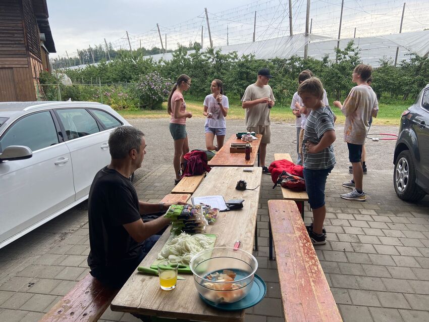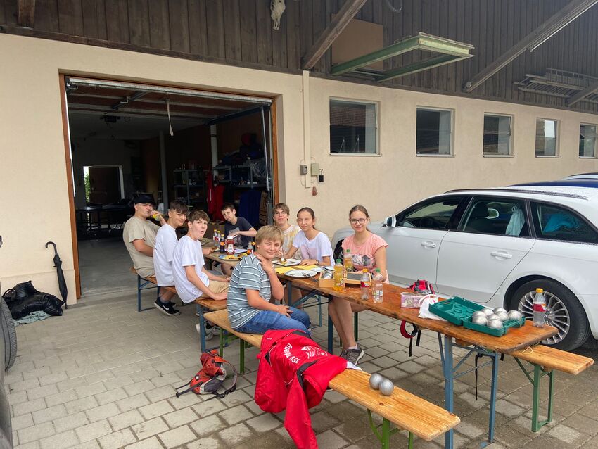 Zwischenzeitlich haben sich die Jugendlichen bei Maultaschen, Kartoffelsalat und Getränken gestärkt und gegen 15 Uhr sind alle nach einem gelungenen Tag wieder nach Tettnang zurückgewandert.