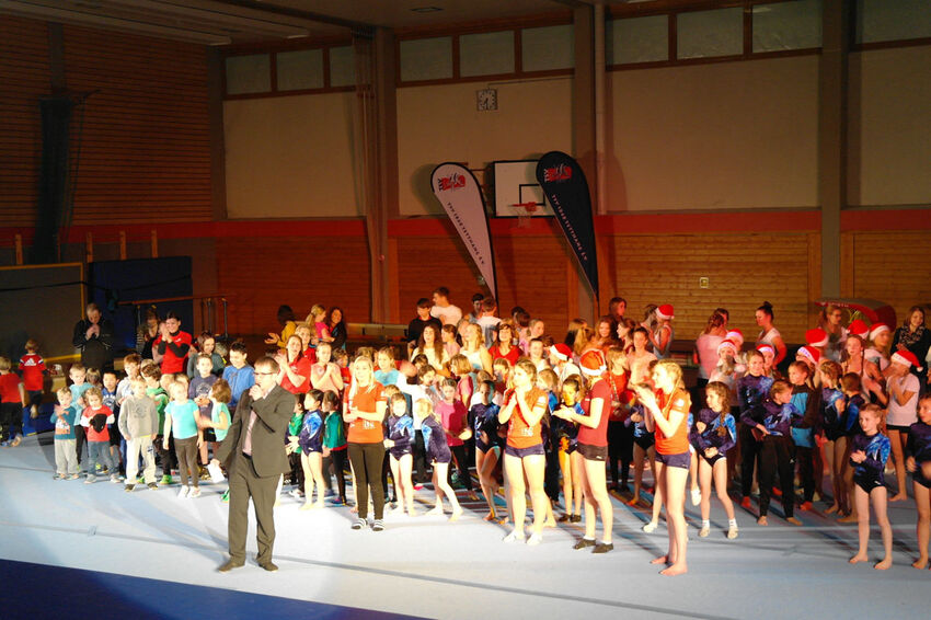 Gerschäftsführer Oliver Schneider konnte außer Eltern, Geschwistern, Großeltern, Verwandten und Freunden der jungen Akteure auch einige TSV-Ehrenmitglieder begrüßen. Freilich dürfen der Nikolaus und sein Ruprecht an so einem Abend nicht fehlen, der Kinder und Gäste gleichermaßen begrüßte und sich auf das Programm freute. Bei der Moderation des Abends wurde Schneider von den beiden Nachwuchsturnerinnen Luca Schwarz und Mia Mitrovic unterstützt, die mit launigen Worten die Vorführungen ankündigten.