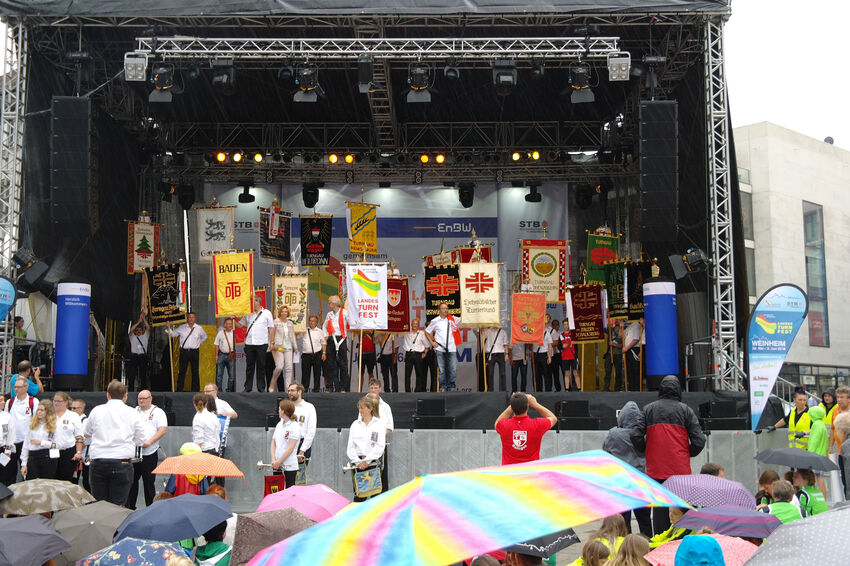 Für die TSV-Reisegruppe war der Abschlusstag mit dem Festzug und der Abschlussfeier auf dem Münsterplatz schließlich ein letzter Höhepunkt des Turnfest-Besuchs. Ausgestattet mit der Vereinsfahne und T-Shirts im Turngau-Look zog man rund ums Münster durch die Ulmer Innenstadt. Auch der nun erstmals einsetzende Regen konnte der Stimmung keinen Abbruch tun, weder bei den Festzug-Teilnehmern noch bei den applaudierenden Zuschauern. Am frühen Nachmitag trat man schließlich die Heimreise an, bereits voller Vorfreude auf das nächste Turnfest, welches 2017 in Berlin stattfinden wird.