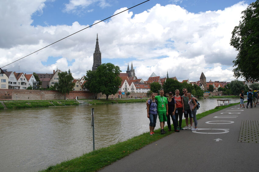 Insgesamt 18 Mitglieder machten sich mit ihrer Camping-Ausrüstung auf den Weg an die Donau. Turnfest-Feeling bedeutet nämlich unter anderem auch Schlafen im Schlafsack, auf der Isomatte und dem harten Klassenzimmerboden, Duschen in der Turnhalle und Frühstück mit den anderen untergebrachten Teilnehmern in der Schulmensa. So waren die Tettnanger fast direkt neben dem Ulmer Münster in einer Schule untergebracht und starteten von dort ihre täglichen Aktivitäten.