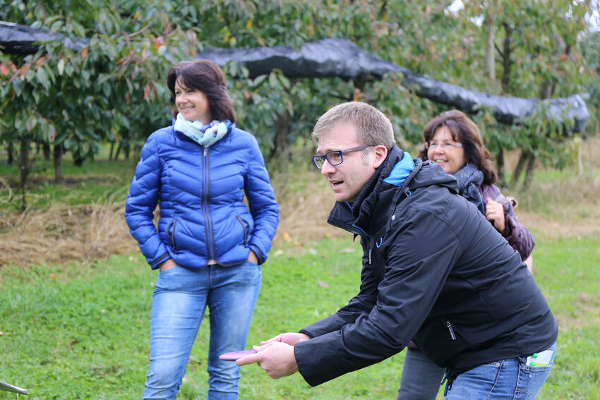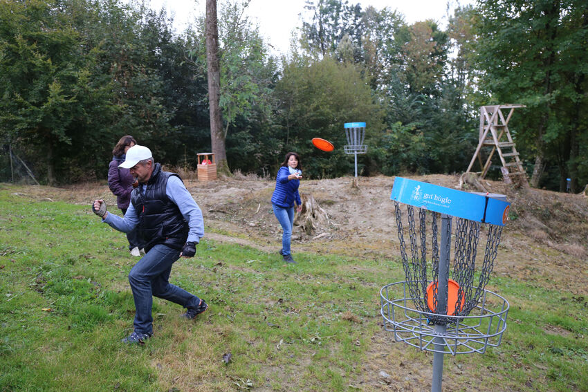 Der jährliche Ausflug der Turnabteilung des TSV Tettnang führte in diesem Jahr zum Gut Hügle in Ravensburg, wo der Discgolf-Parcour besucht wurde.