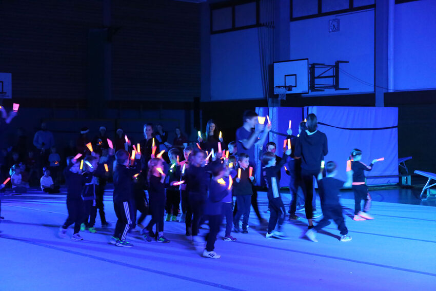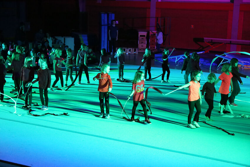 Die Kinder der Vorschulgruppe aus der Turnhalle an der Weinstraße hatten tolle, bunte Lichter dabei und zeigten damit schöne Formationen und Gruppenübungen. Actionreich wurde es bei der Vorführung der Gruppe Hits for Kids Jungs: Die jungen Turner zeigten Schritt für Schritt, was sie am Mini-Trampolin alles gelernt haben. Am Ende war sogar der ein oder andere Salto dabei. "Mit Schwung durchs Leben" hieß die Vorführung der Gruppe Hits for Kids Mädchen. Passend dazu hatten sie Bänder aus der rhythmischen Sportgymnastik im Einsatz.