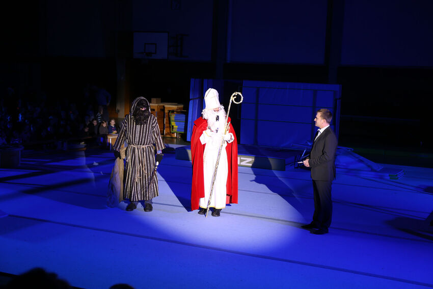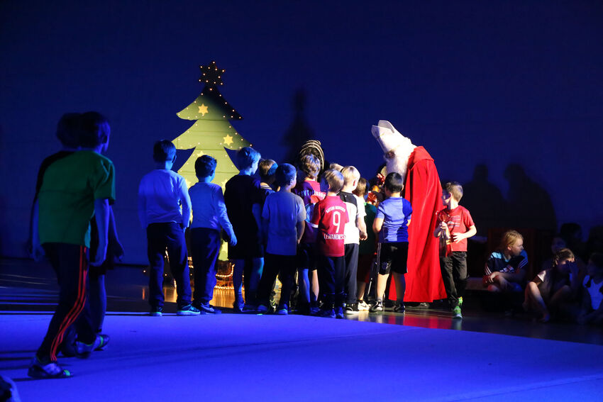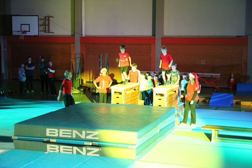 Geschäftsführer Oliver Schneider konnte außer Eltern, Geschwistern, Großeltern, Verwandten und Freunden der jungen Akteure auch einige TSV-Ehrenmitglieder begrüßen. Freilich dürfen der Nikolaus und sein Ruprecht an so einem Abend nicht fehlen, der Kinder und Gäste gleichermaßen begrüßte und sich auf das Programm freute. Bei der Moderation der Veranstaltung wurde Schneider von den beiden Nachwuchsturnerinnen Isabel Eberle und Lola de Oliveira unterstützt, die mit launigen Worten die Vorführungen ankündigten.