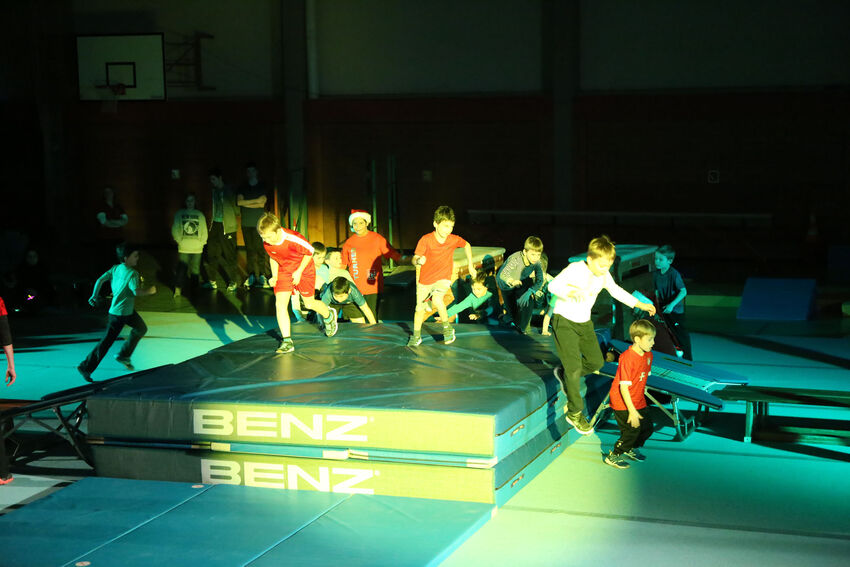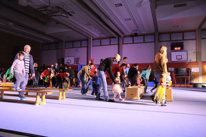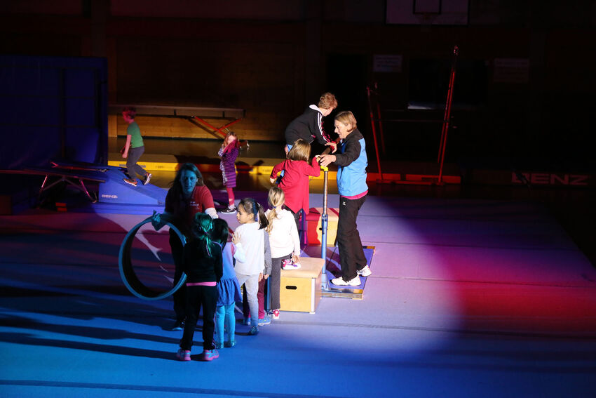 Alle Kinder- und Jugendgruppen der Turnabteilung zeigten, was sie das Jahr über gelernt haben. So konnte die Abteilung ihr ganzes Spektrum an Angeboten präsentieren. Den Anfang machten die Kinder der Gruppe Hits for Kids Vorschule in der Carl-Gührer-Halle. Sie turnten mit großer Freude durch eine tolle Gerätelandschaft mit Barren, Bänken und Minitrampolin. Auffallend viele Papas haben die Kinder der Eltern-Kind-Gruppe mitgebracht und balancierten mit ihnen über Langbänke und Kästen.
