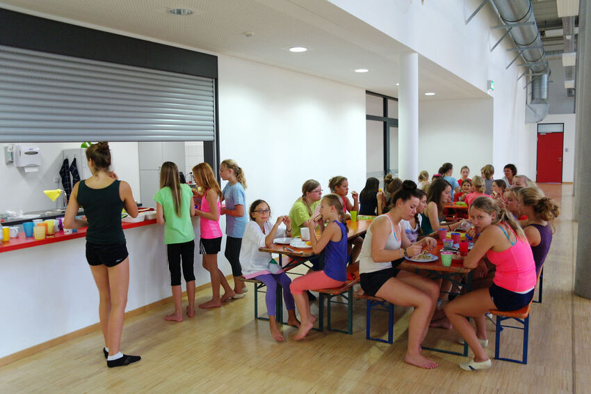 Ihr alljährliches Trainingslager haben die Leistungsturnerinnen des TSV Tettnang in der letzten Woche der Sommerferien durchgeführt. Da die eigene Carl-Gührer-Halle weiterhin ausfiel, in diesem Jahr gemeinsam mit den Turnerinnen und Trainerinnen des TSV Eriskirch. So verbrachten insgesamt 35 Turnerinnen der beiden Vereine mit ihren Trainerteams die Woche tagsüber in der Sporthalle in Eriskirch. Abends fuhr man gemeinsam nach Tettnang, wo man im Jugendhaus „Stadel“ der katholischen Kirchengemeinde St. Gallus übernachten durfte.