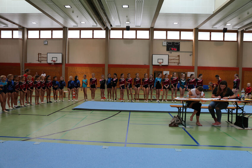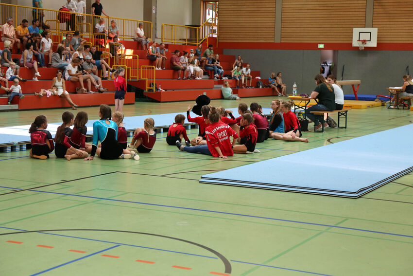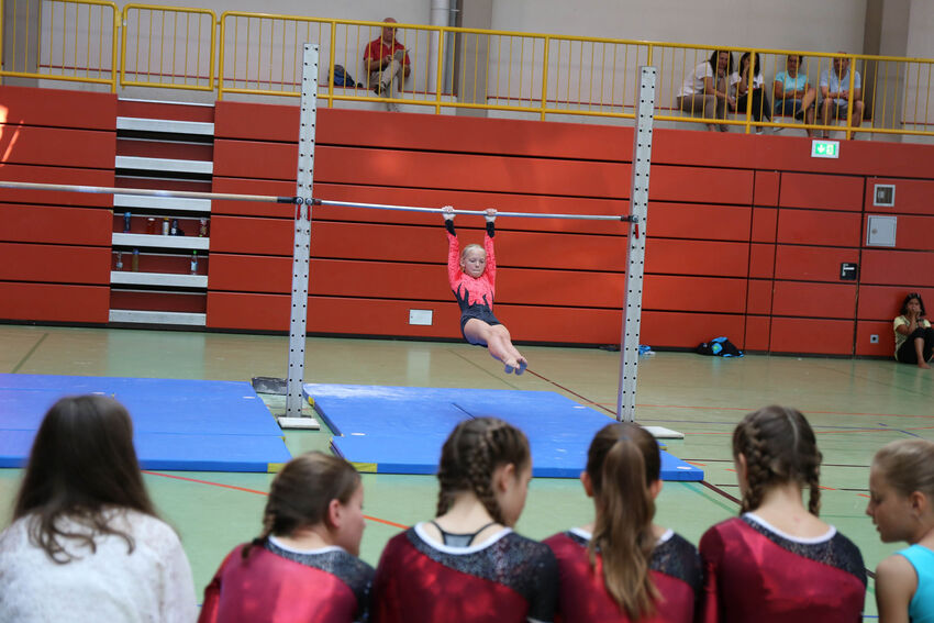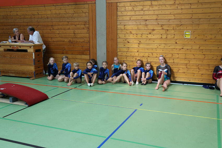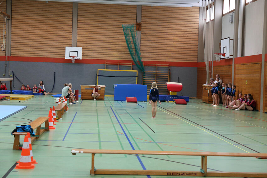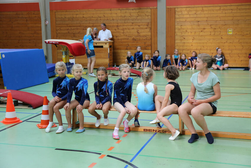 Traditionell sind die Vereinsmeisterschaften auch der erste "richtige" Wettkampf für die neue F-Jugend. So waren die jüngsten Turnerinnen des TSV auch dieses Mal mit großem Eifer bei der Sache und zeigten stolz ihre in der kurzen Zeit gelernten und extra auf sie zugeschnittenen Übungen. Nach dem ersten Gerät war auch die anfängliche Nervosität so gut wie weg und die Mädchen waren mit großer Freude an den Geräten.