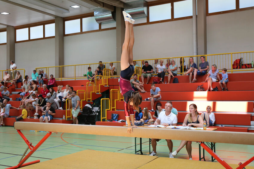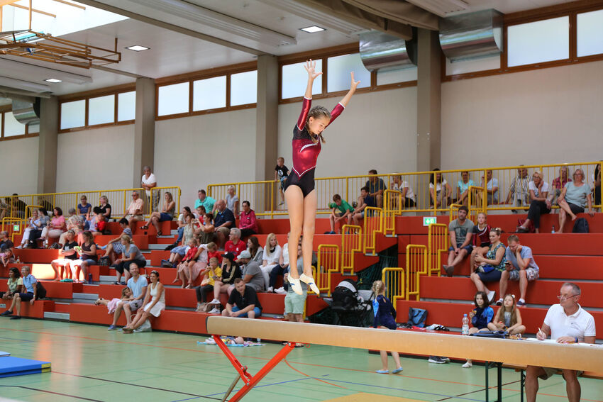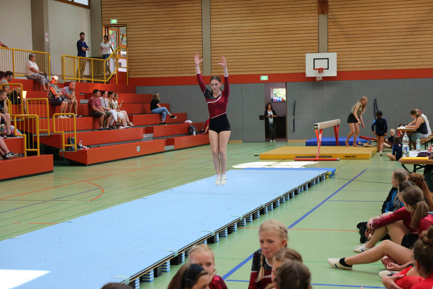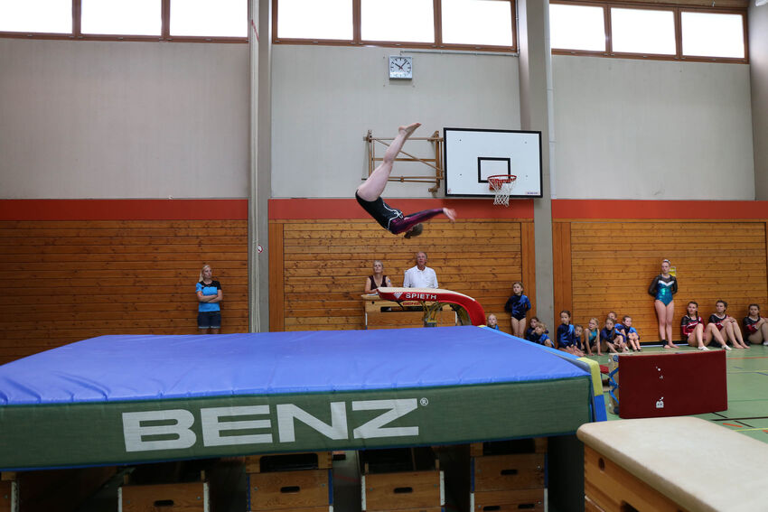 Schließlich warteten drei Wanderpokale für die Vereinsmeisterinnen auf ihre neuen Besitzer. Da die Jugendlichen in ihren altersentsprechenden Übungen verschieden viele Punkte erreichen können, wurden zur Ermittlung der Vereinsmeisterin die erturnten Einzelwertungen in eine Zehn-Punkte-Wertung umgerechnet. So sind die gezeigten Leistungen auch altersübergreifend miteinander vergleichbar. Vereinsmeisterin des TSV Eriskirch wurde Lina Elflein, die sich mit tollen Übungen gegen Vorjahressiegerin Julia Köhl und Jana Scheffler durchsetzen konnte.