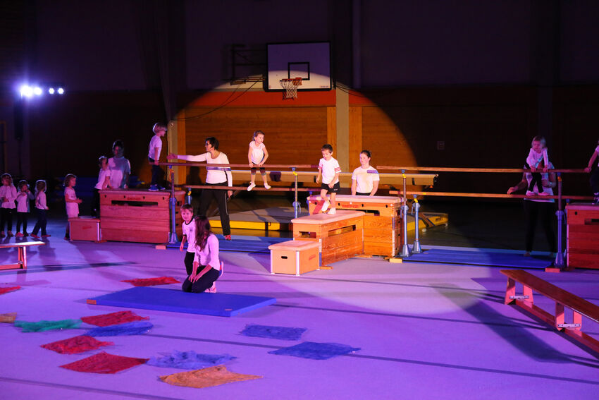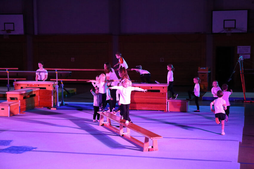 Geschäftsführer Oliver Schneider konnte außer Eltern, Geschwistern, Großeltern, Verwandten und Freunden der jungen Akteure auch einige TSV-Ehrenmitglieder begrüßen. Freilich dürfen der Nikolaus und sein Ruprecht an so einem Abend nicht fehlen, der Kinder und Gäste gleichermaßen begrüßte und sich auf das Programm freute. Alle Kinder- und Jugendgruppen der Turnabteilung zeigten, was sie das Jahr über gelernt haben. So konnte die Abteilung ihr ganzes Spektrum an Angeboten in diesem Bereich präsentieren. Den Anfang machten die Kinder der Gruppe Hits for Kids Vorschule in der Turnhalle an der Weinstraße. Sie übten in ihren Turnstunden zuletzt viel an Barren und Boden und zeigten nun mit großer Freude das Erlernte. Die Kinder der Eltern-Kind-Gruppe zeigten mit ihren Mamas und Papas einen tollen Tanz auf und um kleine, blaue Matten.