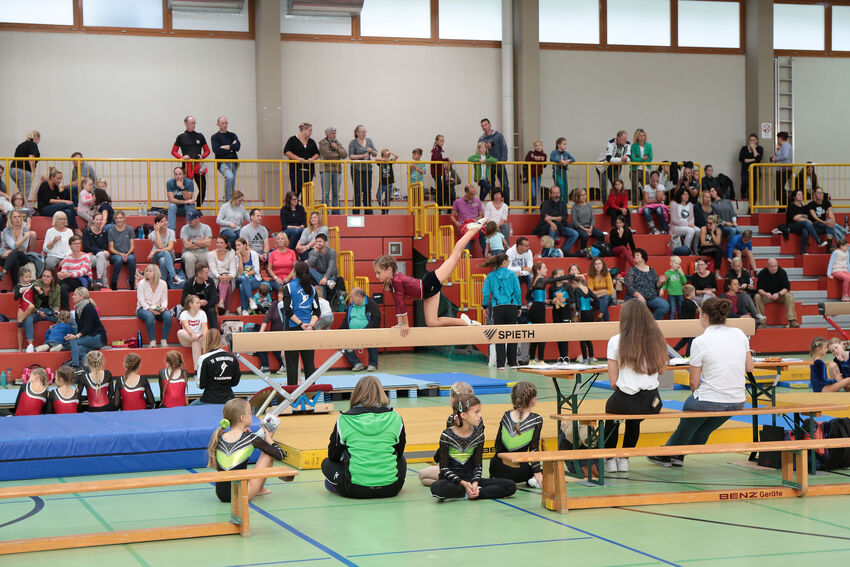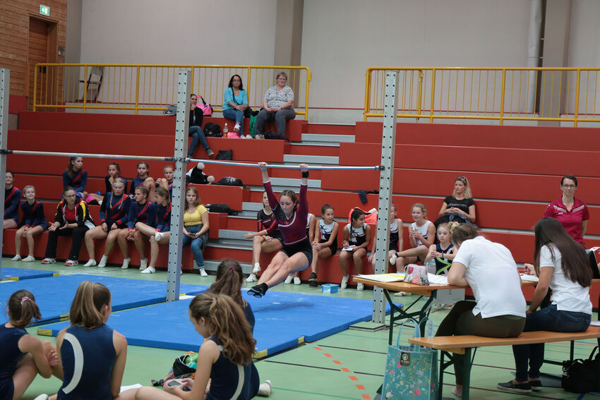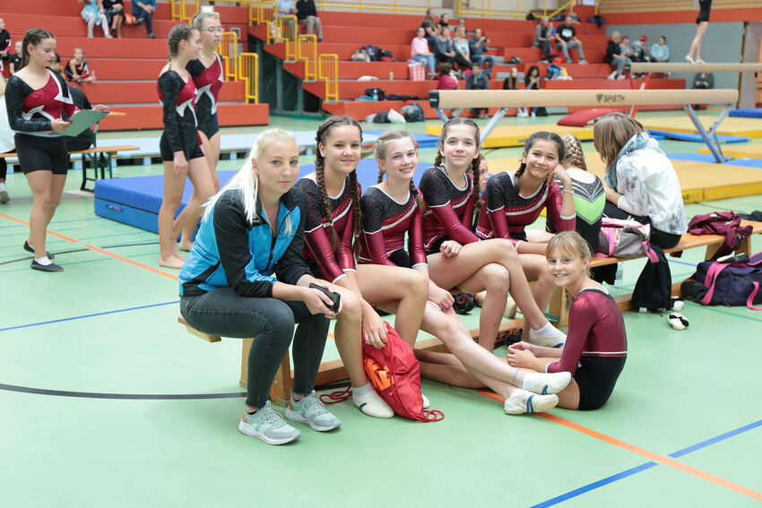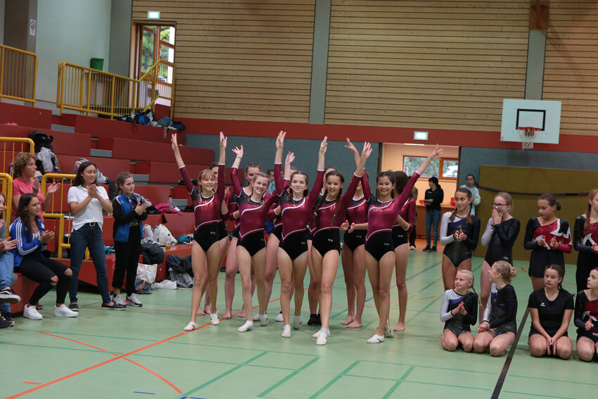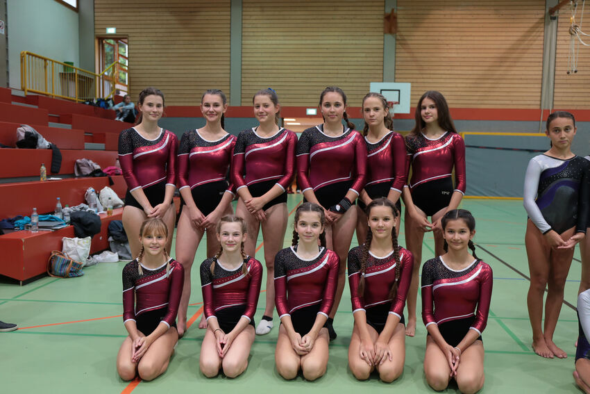 Die jüngsten Starterinnen der F- und E-Jugend begannen den Wettkampftag am frühen Morgen. Die E1-Jugend mit Bernadette Gundlach, Sophie Moser, Kaltrina Veseli und Sina Weirauch musste ersatzgeschwächt antreten, konnte ihre Platzierung von der Vorwoche aber trotzdem verteidigen und kam erneut auf Rang sieben. Die zweite Mannschaft der E-Jugend mit Emma Schmid, Leah Lauterwein, Leonie Vieira, Rosalie D’Elia und Elisa Redinger war zum ersten Mal im Einsatz und wurde elfter. Die Turnerinnen der D-Jugend konnten ihre Platzierung vom ersten Wettkampf nicht ganz halten. Nach Platz zehn in der Vorwoche mussten Carlotta Boison, Nelia Moll, Mila Berens, Sophie Wössner und Mia Guse dieses Mal mit dem elften Rang vorlieb nehmen.