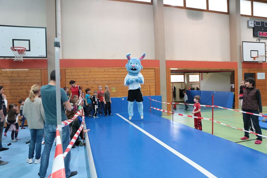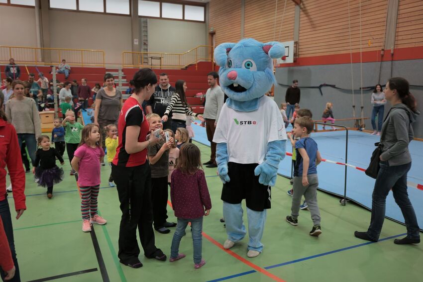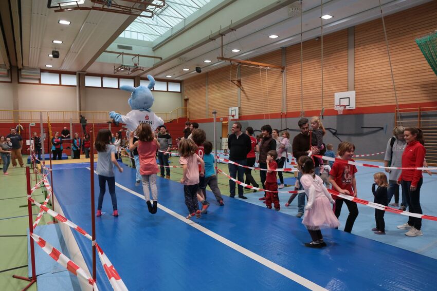 Äußerst zufrieden waren die Organisatoren mit den Teilnehmerzahlen. "Auch wir sind natürlich vom Wetter abhängig - das war dieses Mal fast zu gut. Bei blauem Himmel, Sonnenschein und milden Temperaturen halten sich halt viele auch gerne draußen auf. Vom dem her sind wir trotz leichtem Besucherrückgang froh, dass wir wieder knapp 300 Kinder in unseren Turn-Dschungel locken konnten", bemerkte Geschäftsführer Oliver Schneider und war begeistert über die wieder gut besuchte Halle: "Die ganzen Kinder hier in der Halle zu erleben, wie sie einen Riesenspaß haben, ist natürlich großartig." Große Freude bei den Kindern rief auch der Besuch von Stargast "Turni" hervor, dem Maskottchen des Schwäbischen Turnerbundes. Der blaue Plüschhase nahm sich viel Zeit und spielte mit den Kindern und zeigte auch das eine oder andere turnerische Kunststück.