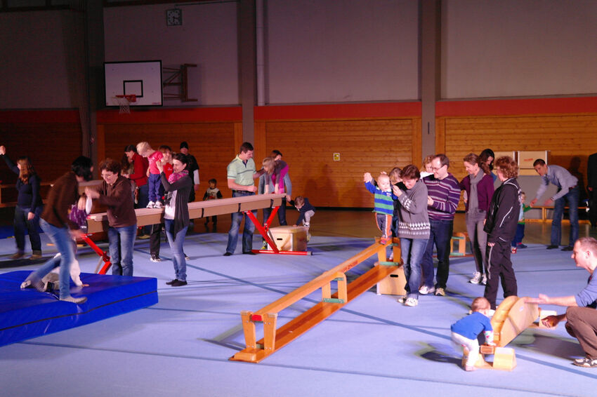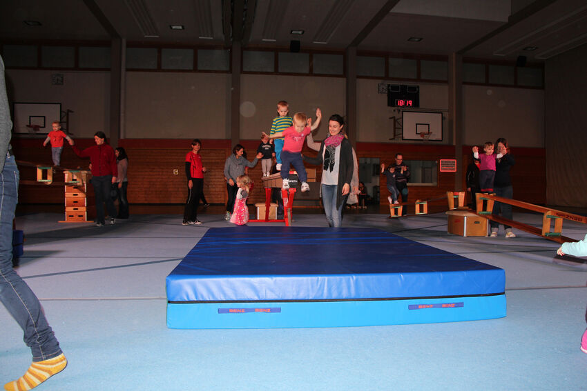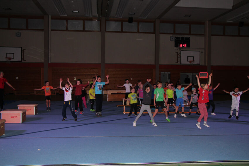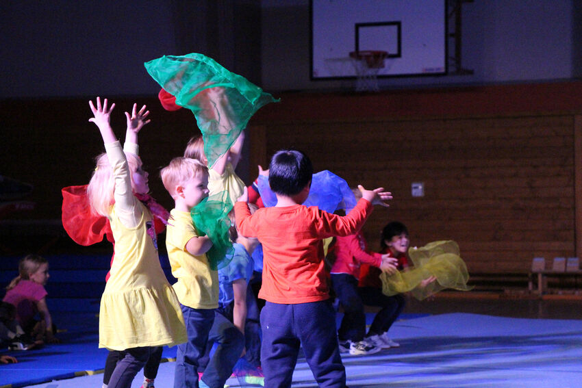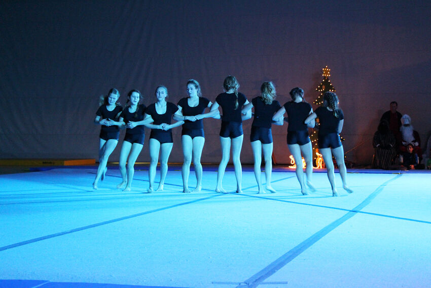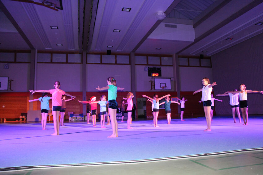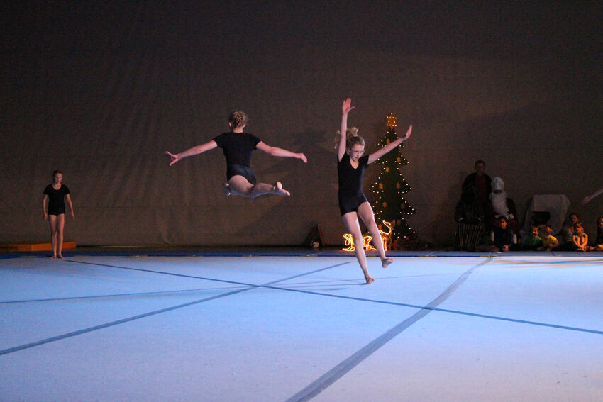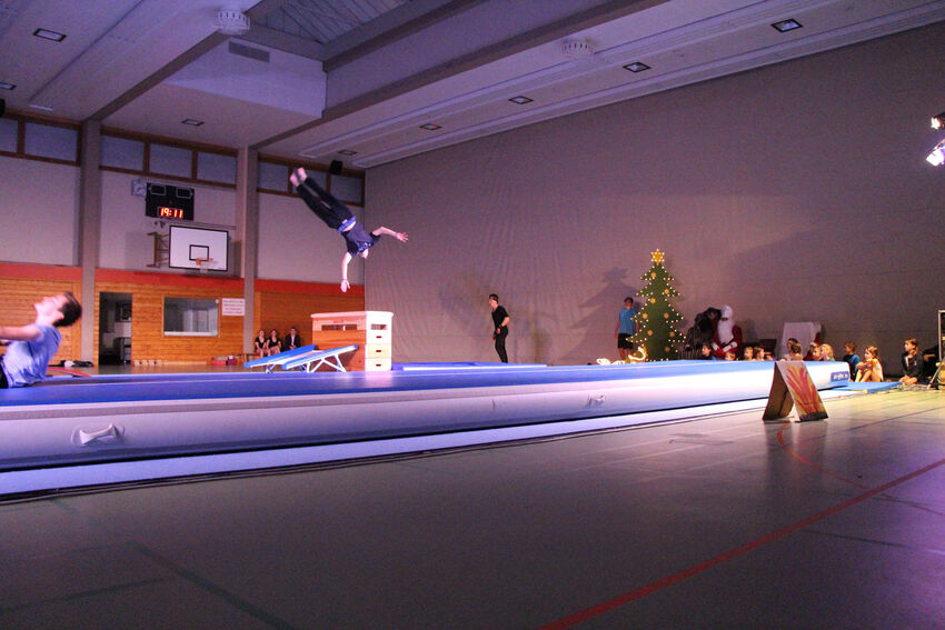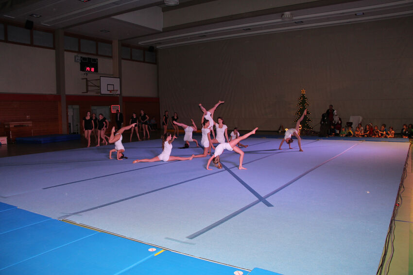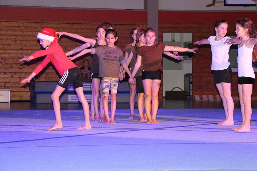Die Zahl der Vorführungen war in diesem Jahr auch aufgrund der einjährigen Pause in der Carl-Gührer-Halle etwas geringer, trotzdem konnte die Turnabteilung ihr ganzen Spektrum an Angeboten präsentieren, und in der Folge die einzelnen Gruppen zeigen, was sie das Jahr über gelernt haben. So sprangen und balancierten die Kinder der Eltern-Kind-Gruppen über Kästen und Bänke, die Vorschulgruppen präsentierten eine bunte Choreografie mit Tüchern. Die Mädchen und Jungen im Grundschulalter zeigten kühne Sprünge auf dem Mini-Trampolin, bevor der Nachwuchs der Leistungsturngruppe eine kleine Weihnachtgeschichte aufführte.