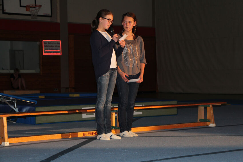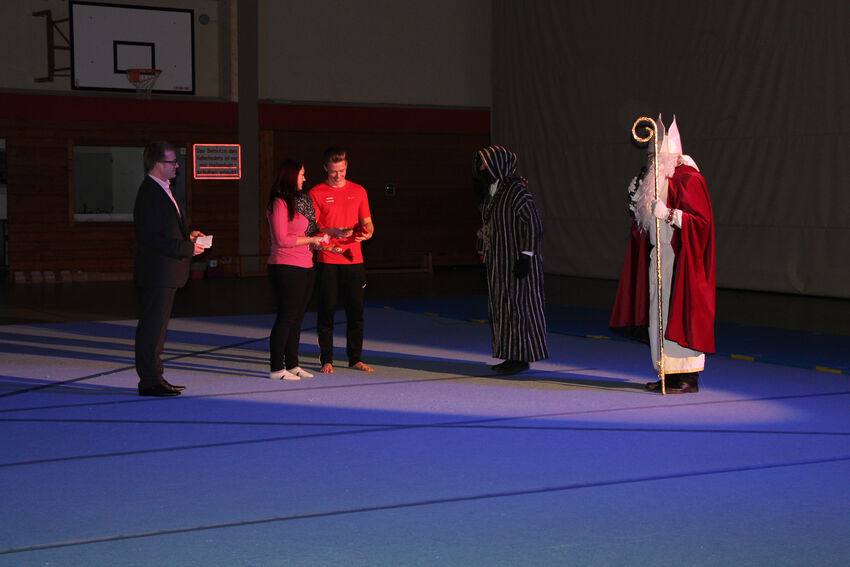 Abteilungsleiter Oliver Schneider konnte außer Eltern, Geschwistern, Großeltern, Verwandten und Freunden der jungen Akteure auch zahlreiche TSV-Ehrenmitglieder begrüßen. Freilich dürfen der Nikolaus und sein Ruprecht an so einem Abend nicht fehlen, der Kinder und Gäste gleichermaßen begrüßte und sich auf das Programm freute. Bei der Moderation des Abends wurde Schneider von den beiden Nachwuchsturnerinnen Larissa Bentele und Amelie Gauß unterstützt, die mit launigen Worten die Vorführungen ankündigten.