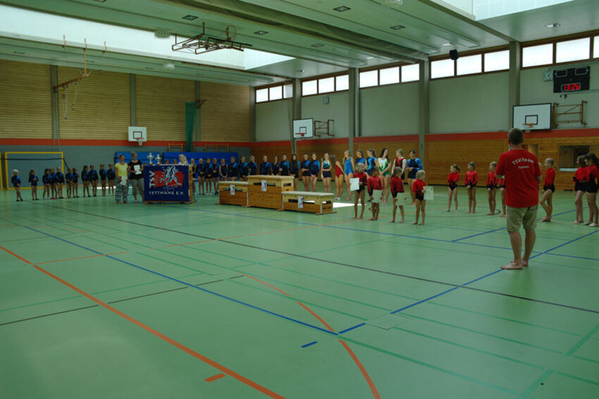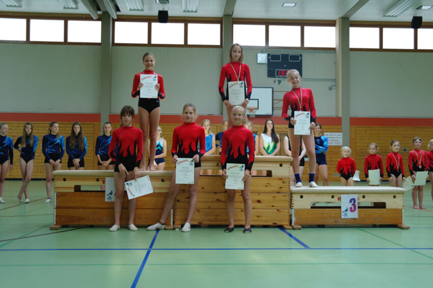 Ihre Vereinsmeisterschaften gemeinsam abgehalten haben die Turnerinnen des TSV Tettnang und des TSV Eriskirch am vergangenen Samstag in der Carl-Gührer-Halle. Am meisten strahlten nach einem schönen Wettkampf natürlich die Siegerinnen: Lola de Oliveira (Jugend TSV Tettnang), Julia Köhl (Jugend TSV Eriskirch) und Anke Forster (Aktive TSV Tettnang) gewannen die Gesamtwertung und sind damit die neuen Vereinsmeisterinnen der beiden Vereine.