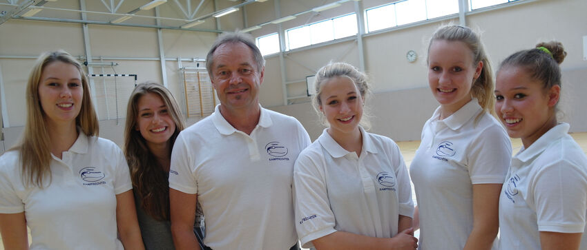 Gleich sieben neue Kampfrichter hat die Leistungsturngruppe des TSV Tettnang in ihren Reihen. Elena Neut, Mona Nachbaur, Günter Maier, Johanna Häfele, Lilliane Hirschle und Jasmin Pfeiffer (im Bild von links) sowie Greta Wizgall (nicht im Bild) sind seit dem Frühjahr im Besitz der D-Lizenz für das weibliche Kunstturnen. Drei Tage dauerte die Ausbildung, am Ende stand eine Prüfung in Theorie und Praxis an. Abteilungsleiter Oliver Schneider freut sich über den Zuwachs an ehrenamtlichen Helfern in der LTG: „Qualifizierte Kampfrichter zu haben ist die Voraussetzung, um mit unseren Turnerinnen überhaupt an Wettkämpfen teilnehmen zu dürfen. Daher freue ich mich sehr, die neuen Kampfrichter in unserem Team begrüßen zu dürfen.“ Erste Einsätze hatten „die Neuen“ bereits beim Kinderturnfest und bei den Vereinsmeisterschaften, die nächsten Wettkämpfe stehen im Herbst an.