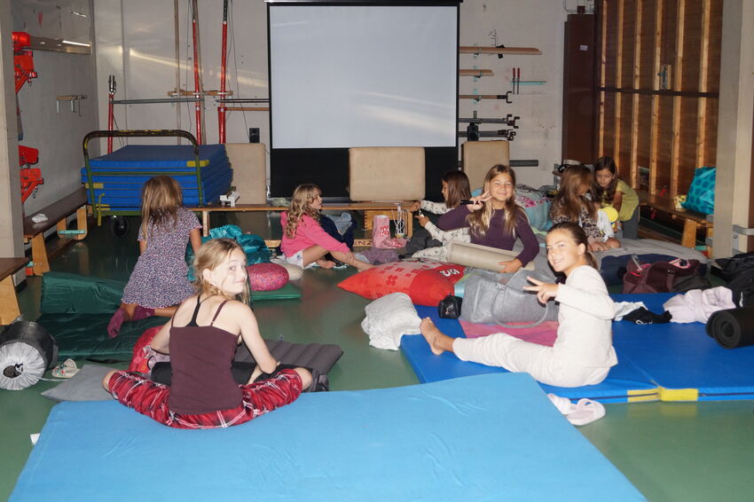 Ein besonderes Highlight für die jüngsten Turnerinnen war die diesjährige Abenteuernacht. Mädchen im Alter von 8 bis 11 Jahren durften eine Nacht in der Carl-Gührer-Halle verbringen und echte Lagerluft schnuppern. Auf dem Programm stand zunächst das kreative Bemalen einer Stofftasche, bevor es in einer kleinen Trainingseinheit hieß: turnen, toben und ausprobieren. Zum Abschluss des Tages verwandelte sich der Geräteraum in ein gemütliches Kino – mit Decken, Kissen und einem spannenden Film.