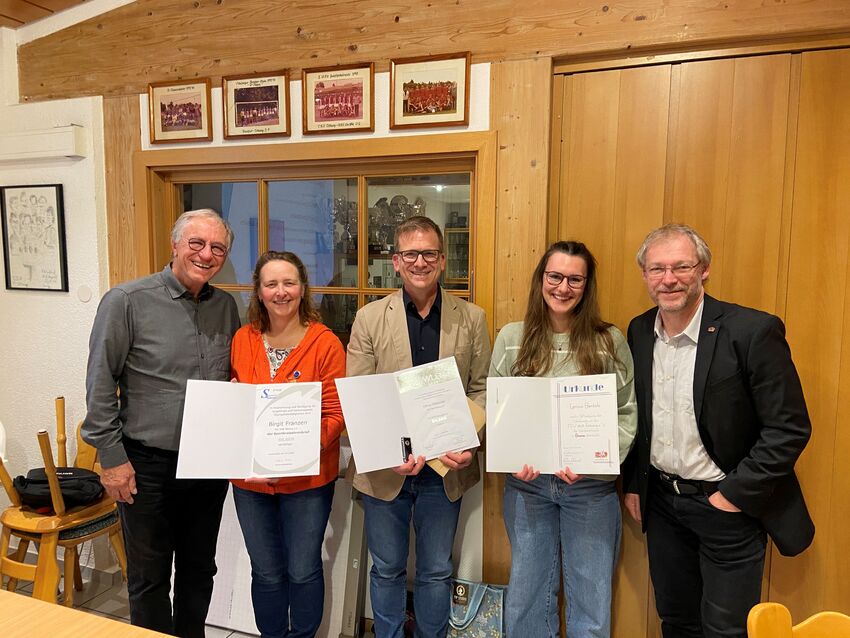 Abschließend wurden Im Rahmen der Versammlung mehrere Mitglieder für ihre besondere Verdienste um die Turnabteilung im TSV ausgezeichnet. Larissa Bentele erhielt die TSV-Ehrennadel in Silber, überreicht von Harald Franzen, Geschäftsführer des TSV Tettnang. Birgit Franzen wurde mit dem Ehrenbrief in Silber des Sportkreises Bodensee geehrt. Oliver Schneider erhielt die Silberne Ehrennadel des WLSB. Beide Ehrungen nahm Gerhard Eschrich in seiner Funktion als Ehrungsbeauftragtem des Sportkreises Bodensee vor.