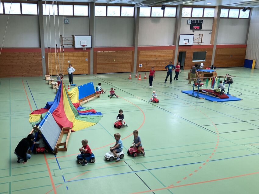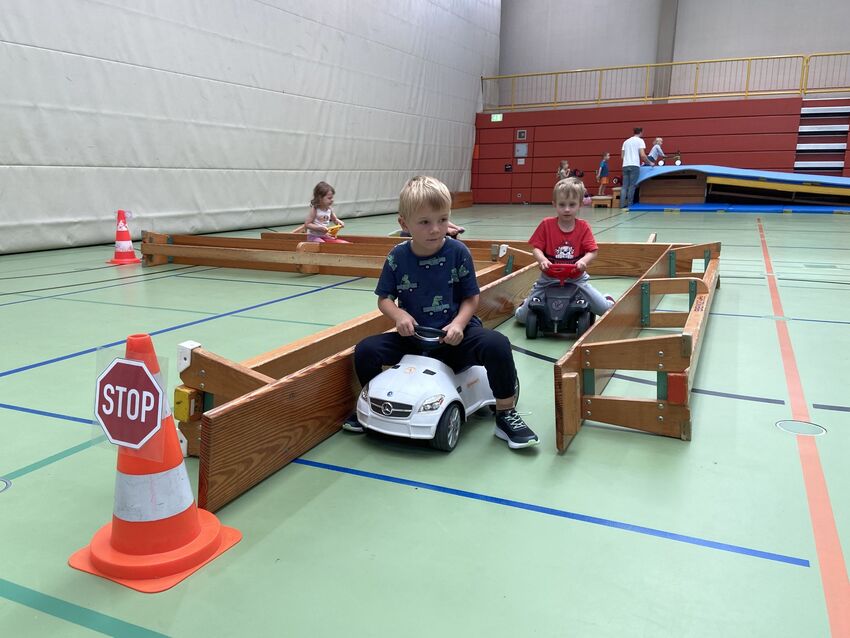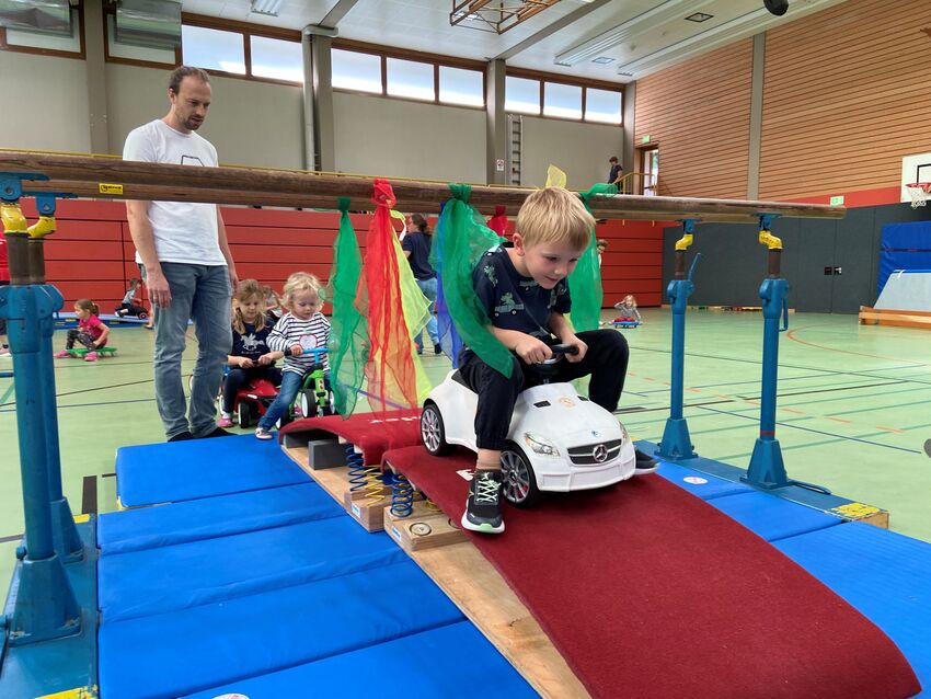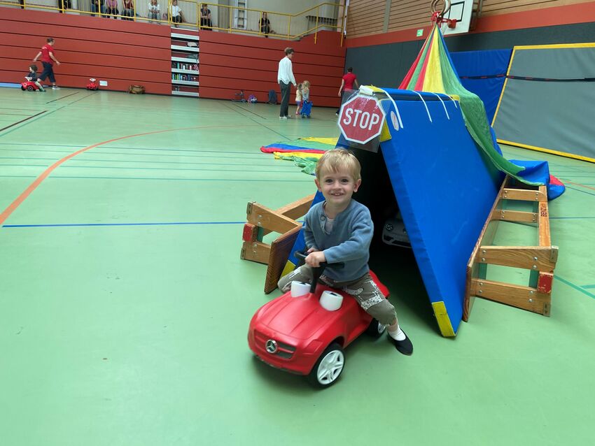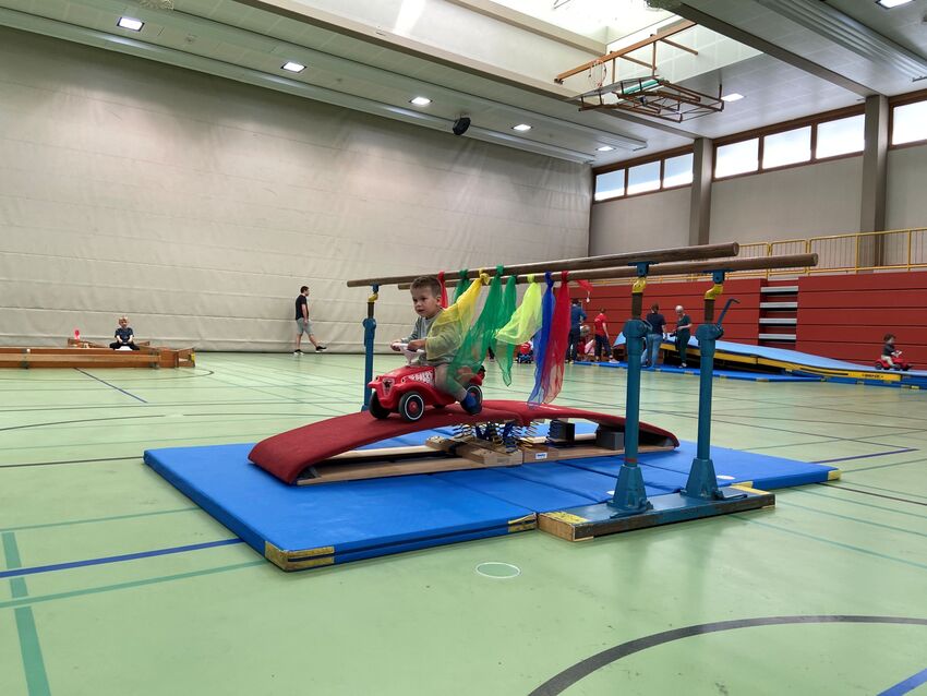 Alle Kinder durften an diesem Tag ihr Lieblingsfahrzeug mitbringen – ob Bobbycar, Roller oder Rollbrett, alles war erlaubt. Die engagierten Übungsleiterinnen Anja Hotopf, Birgit Franzen und Larissa Schneider verwandelten die Turnhalle in eine traumhafte Fahrzeuglandschaft für alle kleinen Fahrer. Es gab einen abwechslungsreichen Parcours, der für große Begeisterung sorgte.
