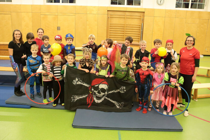 Am letzten Montag vor den Fasnetsferien verwandelte sich unsere Turnhalle an der Weinstraße in ein großes Piratenschiff, auf dem die Eltern-Kind-Gruppe und die Vorschulgruppe ein fröhliches Fasnetsturnen feierten.